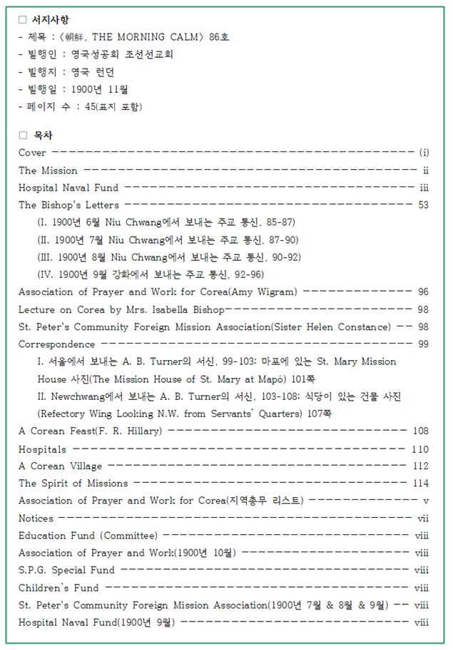 영국성공회 조선선교회가 런던에서 펴낸 잡지 〈모닝캄〉 86호