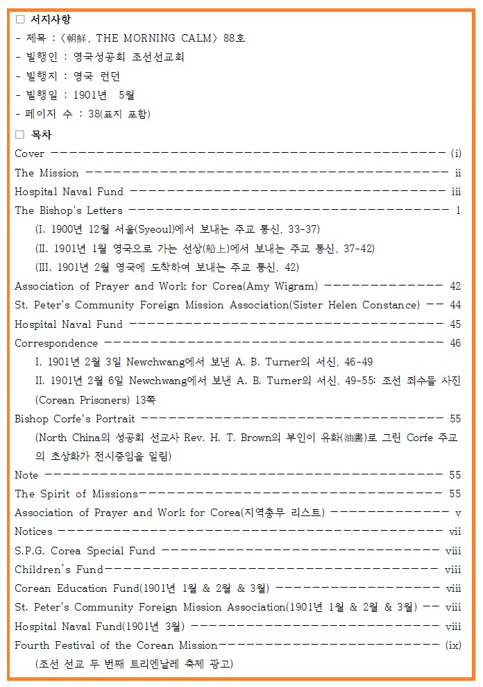 영국성공회 조선선교회가 런던에서 펴낸 잡지 〈모닝캄〉 88호