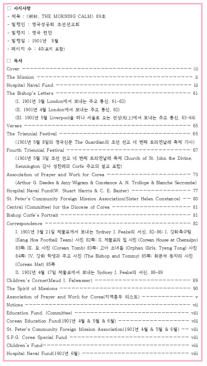 영국성공회 조선선교회가 런던에서 펴낸 잡지 〈모닝캄〉 89호