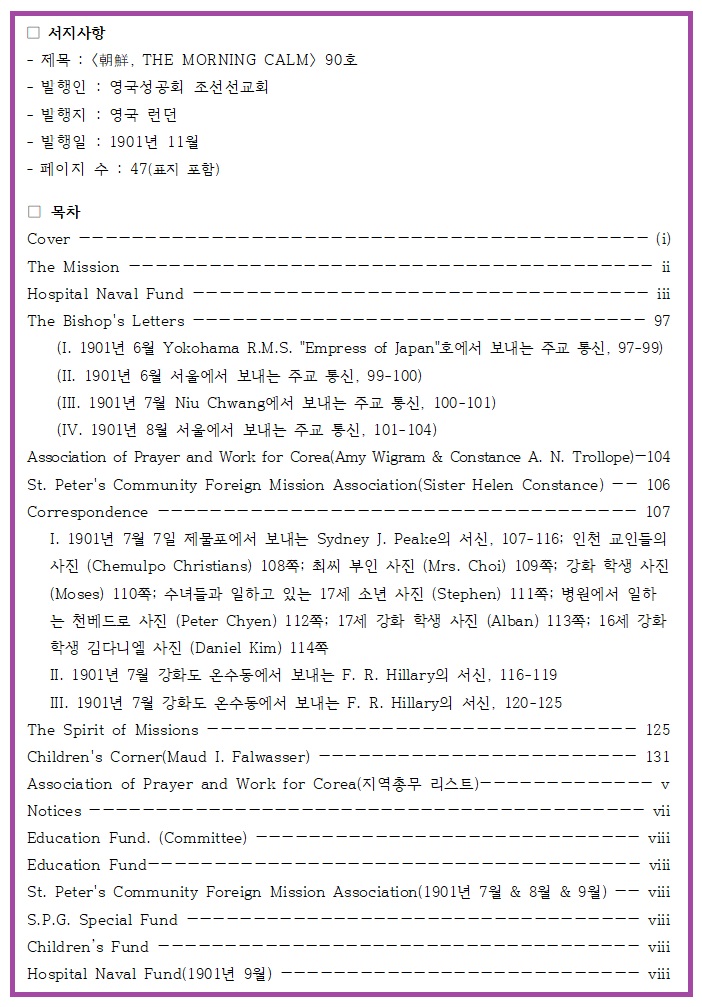 영국성공회 조선선교회가 런던에서 펴낸 잡지 〈모닝캄〉 90호