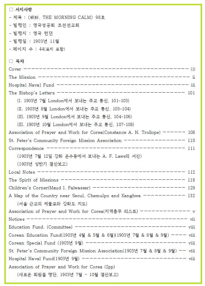 영국성공회 조선선교회가 런던에서 펴낸 잡지 〈모닝캄〉 98호