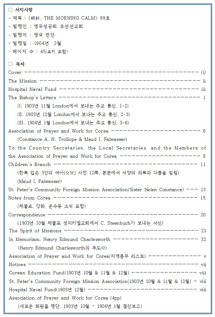 영국성공회 조선선교회가 런던에서 펴낸 잡지 〈모닝캄〉 99호