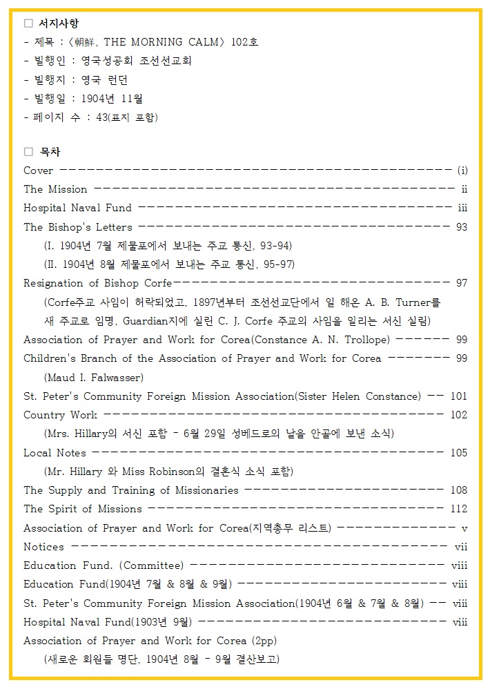영국성공회 조선선교회가 런던에서 펴낸 잡지 〈모닝캄〉 102호