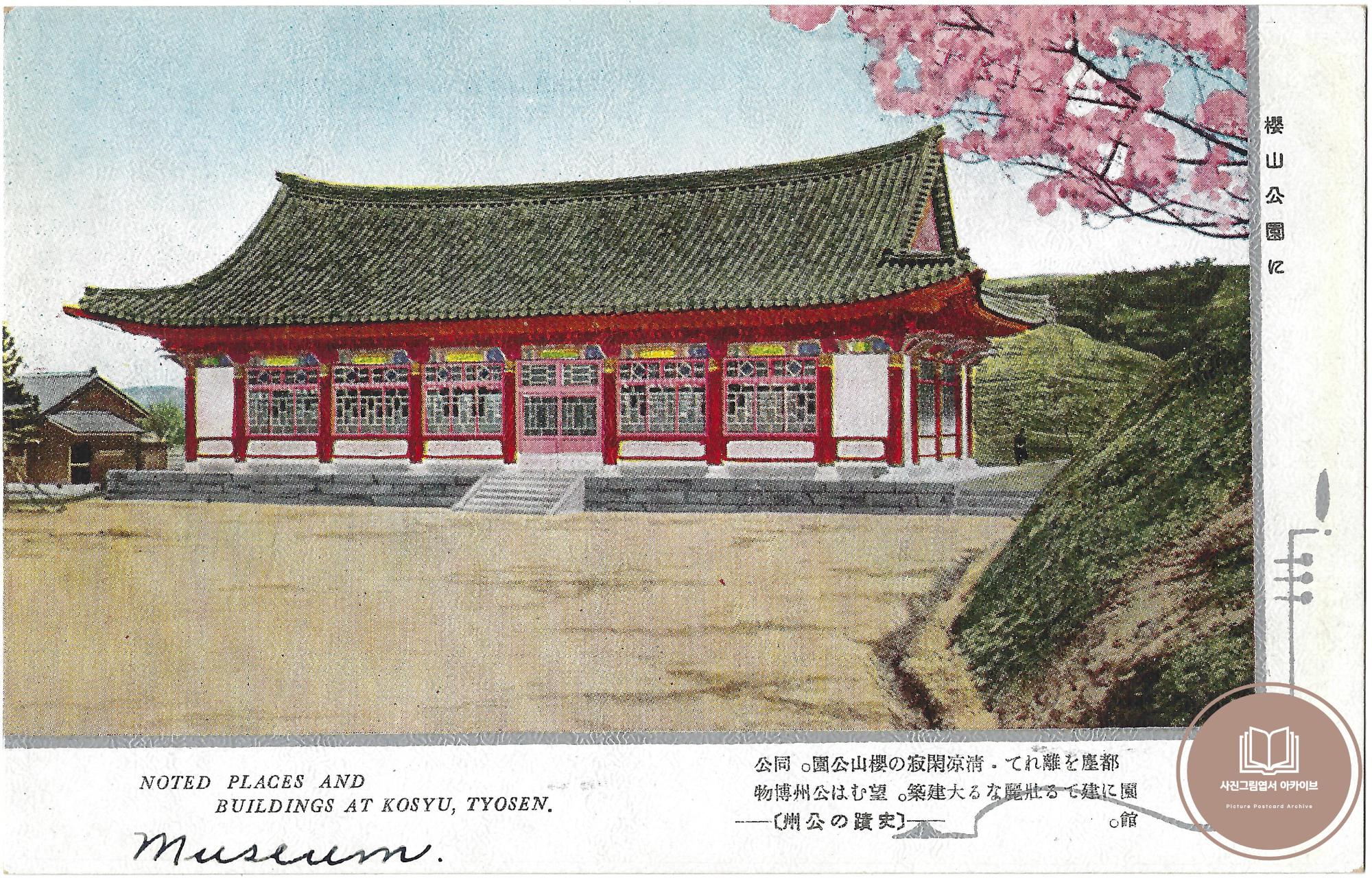 1930년대 경성 히노데상행에서 발행한 것으로 추정되는 '사적의 공주 시리즈 사진그림엽서' 중 충남도청 선화당을 개조한 백제박물관 모습이다. 선화당은 본래 충청남도 청사의 본관으로 활용되었던 건물로 도청이 대전으로 이전한 후 앵산공원으로 이건되어 백제박물관으로 활용되었다. 따라서 충남도청이 이전한 후 발행된 사진그림엽서인 만큼 최소 1932년 이후에 발행된 것임을 추정할 수 있다.