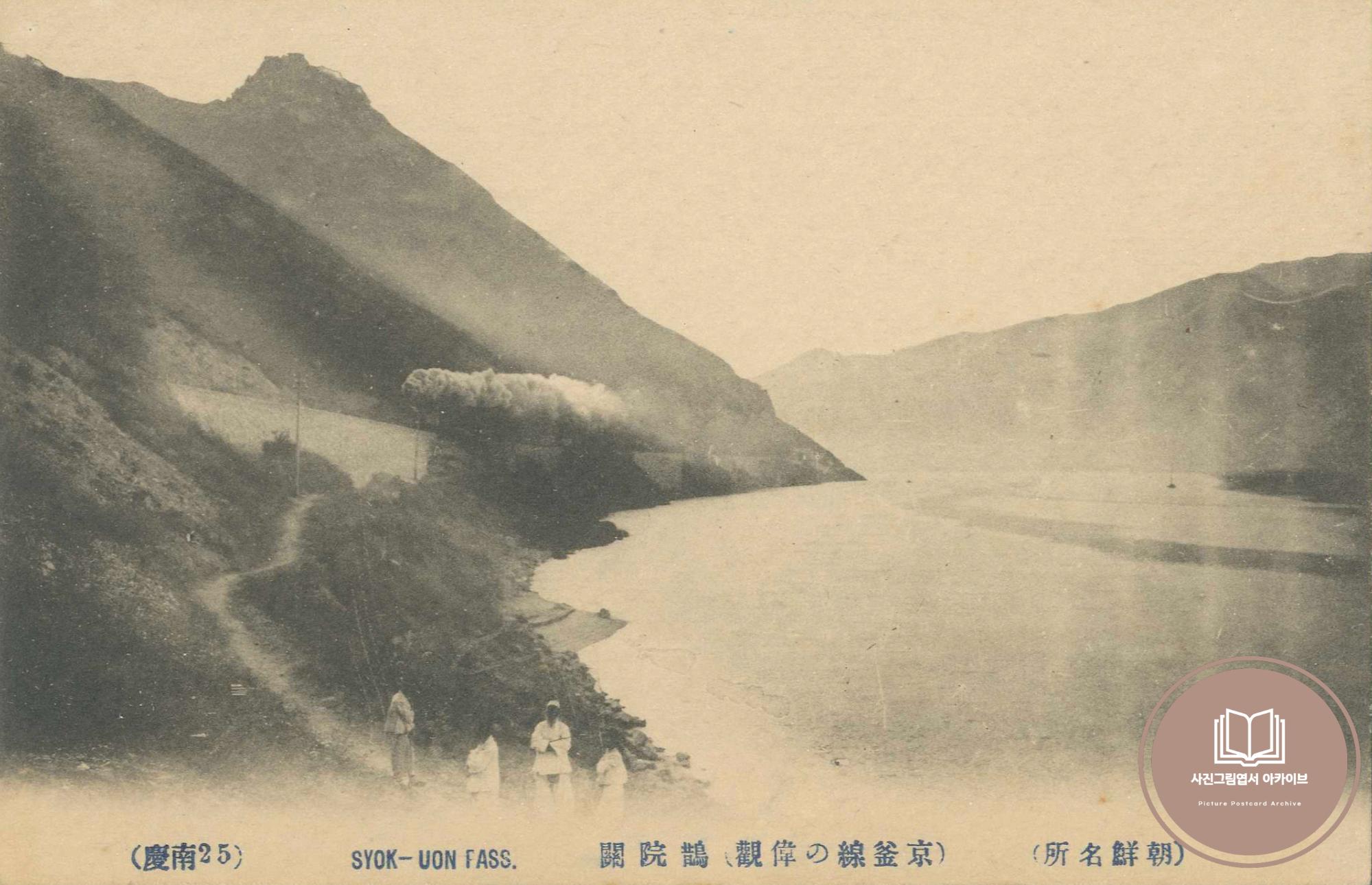 1910년대 경성의 대표적 사진그림엽서 발행처인 일출상행(히노데, 日之出常行)에서 발행한 '조선명소(朝鮮名所)' 시리즈 중 경부선 밀양 작원관 배경을 구도가 담긴 기록이다. 밀양 작원관은 밀양시 삼랑진읍 검세리에 위치한 교통의 요충지로 경부선 개통 이전에는 경상남도 일원에서 한양으로 올라가는 길목 중 하나였다.