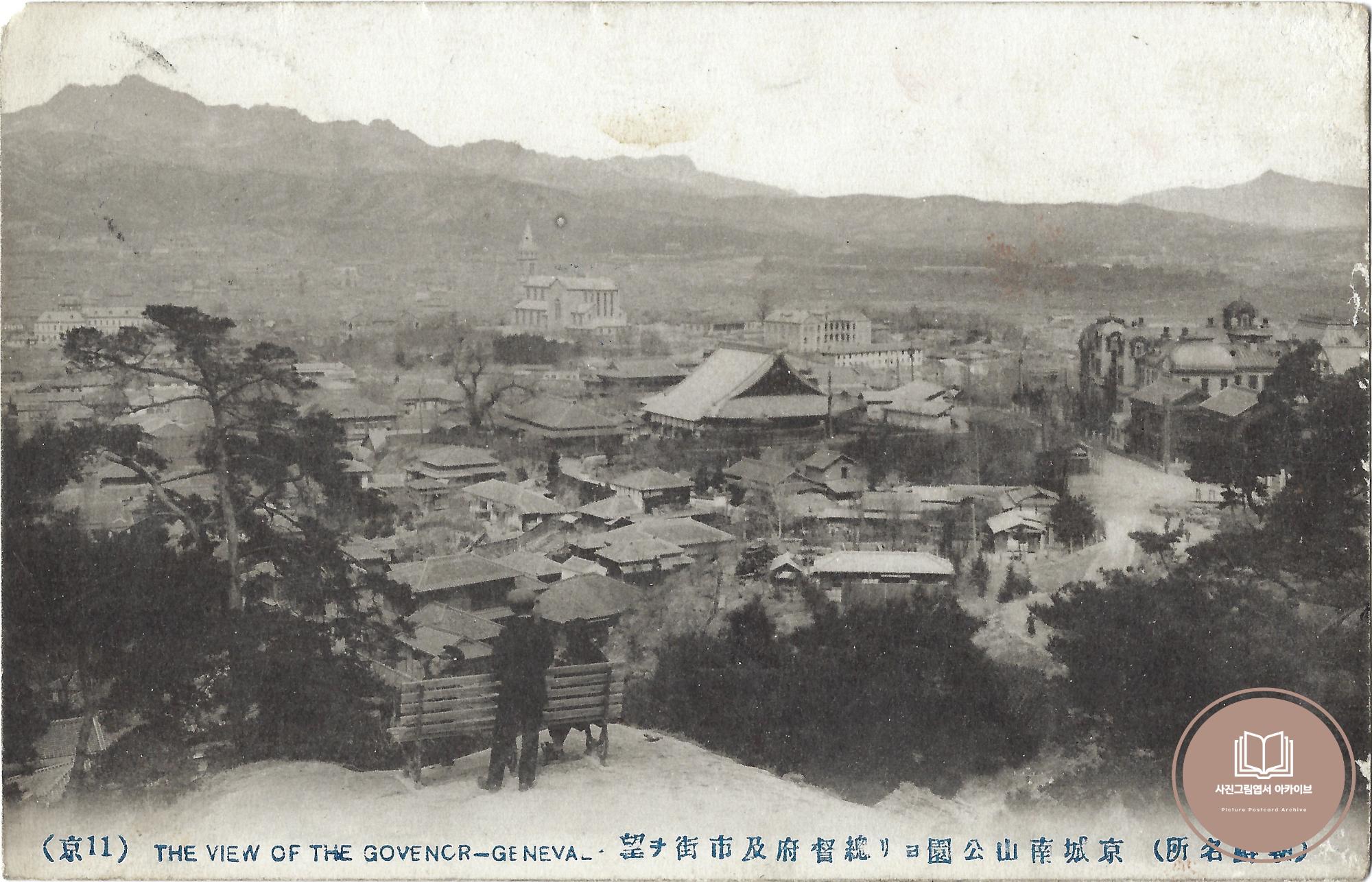 1910년대, 경성을 중심으로 사진그림엽서를 활발하게 제작·판매하던 일출상행(히노데)에서 발행한 조선명소 시리즈 엽서 중 서울 남산공원에서 북쪽의 시가지를 조망한 자료이며 '京 11'에 해당하는 사진그림엽서이다. 엽서 우측에 경성 총독부 청사가 위치하고 있으며, 중간 부근에 뾰족한 첨탑이 인상적인 명동성당을 확인할 수 있다. 본 사진그림엽서 속에 남산 총독부 청사를 조선총독부로 칭하는 것으로 보아 경복궁 근정전 앞의 조선총독부 청사가 개관하기 이전의 기록으로 보인다. 나아가 한양도성 동부권역의 모습이 전통시대 모습을 보여줌으로 1910년대 발행된 기록으로 볼 수 있다.