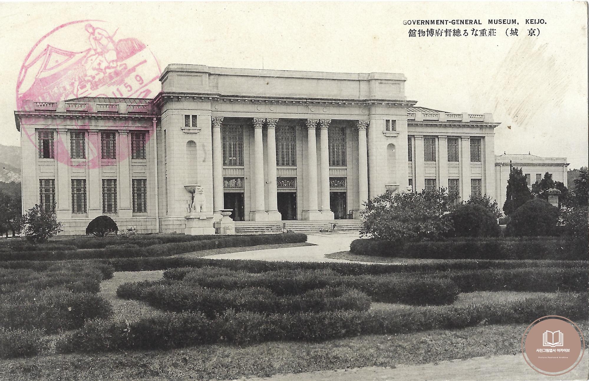 1936년 다이쇼사진공예소(大正寫眞工藝所)에서 발행한 '대경성의 신풍경' 16매 사진그림엽서 중 조선총독부 박물관 청사 전경이 수록된 자료이다. 조선총독부 박물관은 1915년 경복궁 내에서 진행한 조선물산공진회의 부속 시설 중 하나로 건립된 건물을 박람회 후 박물관으로 전용한 것이 시초이다.