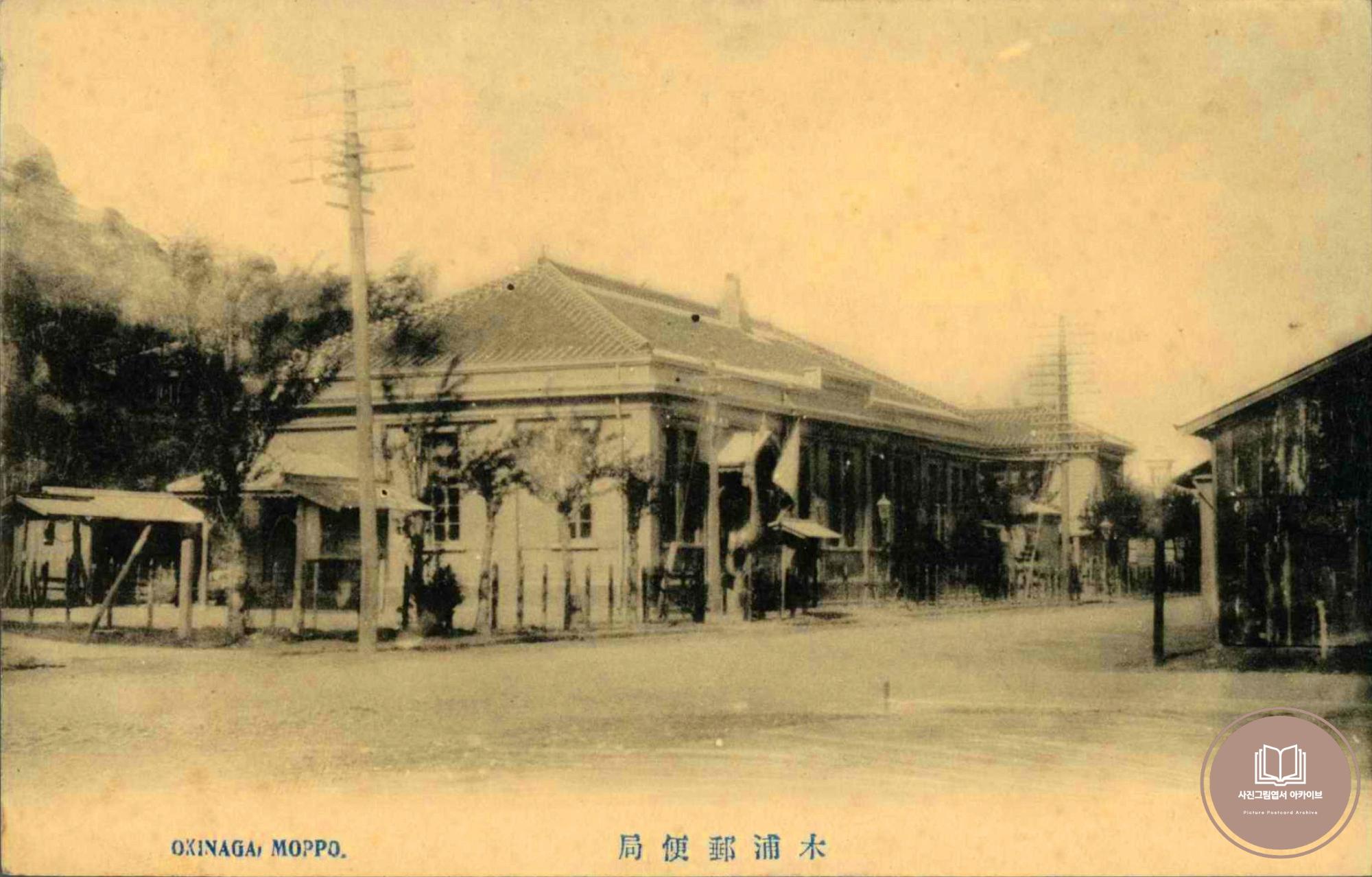 1910년대 발행된 것으로 추정되는 목포우편국 사진그림엽서이다. 목포우편국은 1905년 현재의 유달산우체국 부지에 개국하였으며, 본 사진그림엽서는 해당 부지에 개국한 당시의 모습으로 추정되나 정확한 발행시기를 유추하기 난해하다.