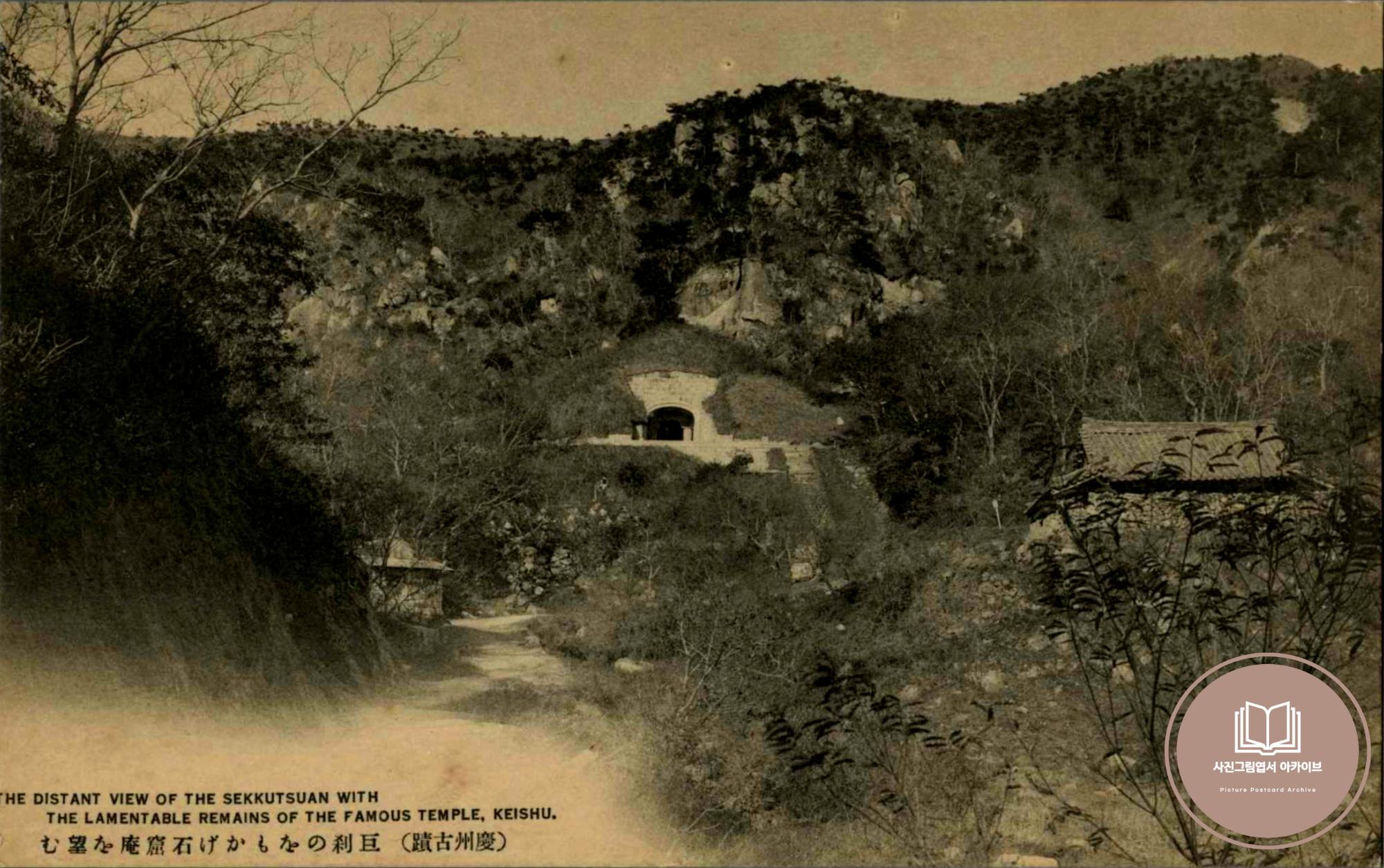 1920년대 발행된 것으로 추정되는 다이쇼사진공예소(大正寫眞工藝所)의 경주고적 시리즈 사진그림엽서 '석굴암 원망' 자료이다. 석굴암은 1912년 초대 조선총독인 테라우치에 의해 대대적인 중수작업이 진행되었다. 본 사진그림엽서 속 석굴암 입구 주변에 커다란 돌이 산포한 것으로 보아 1920년대 보수공사가 이뤄질 당시에 촬영한 것으로 추정할 수 있다.