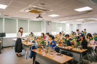 2025년 서울시민대학 다시가는 캠퍼스 행사 중 업사이클 꽃꽂이 강의 모습이다.
