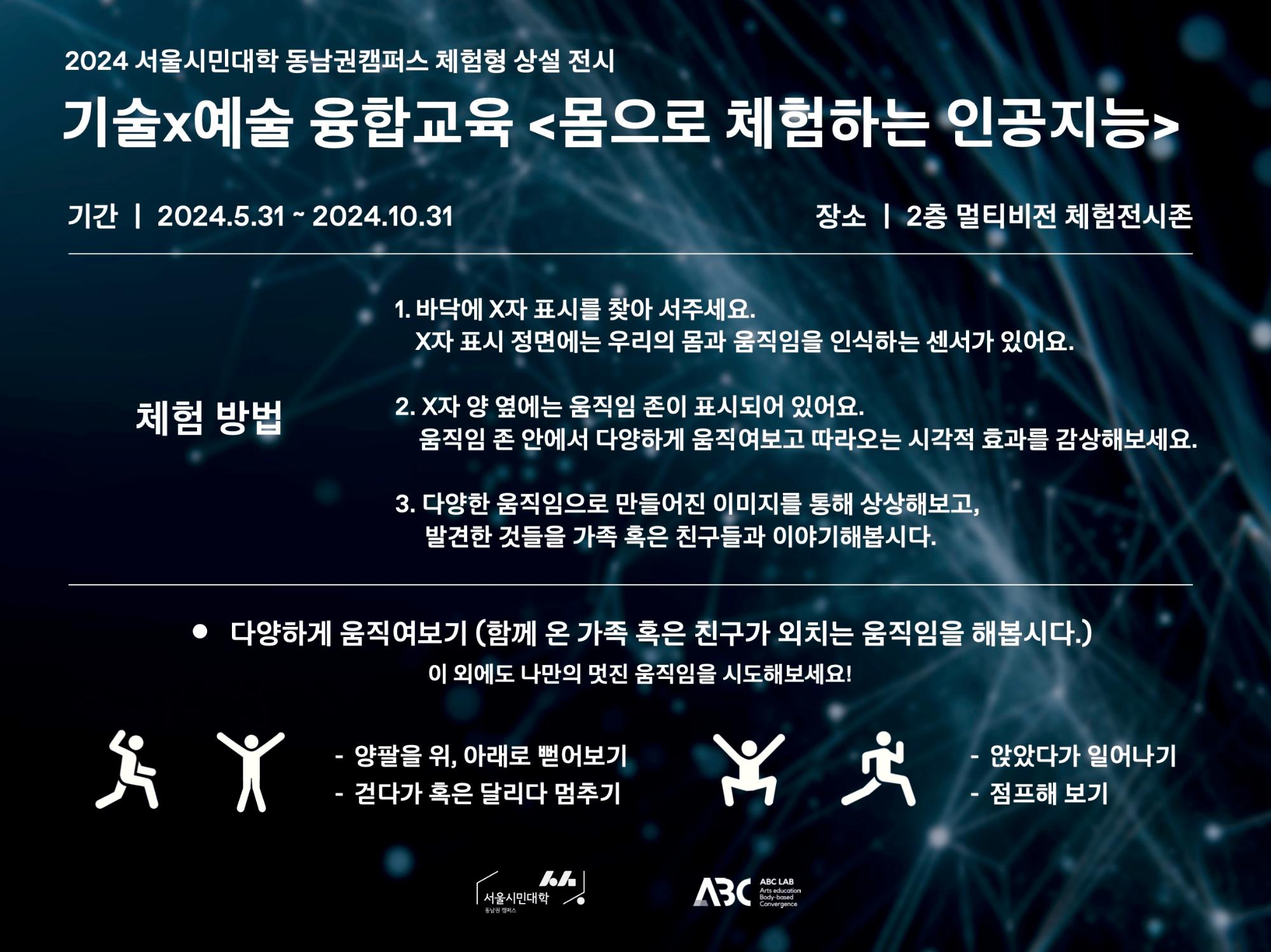 2024 서울시민대학 동남권캠퍼스에서 진행한 기술과 예술 융합교육 몸으로 체험하는 인공지능 진행모습이다.