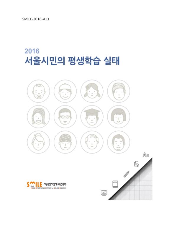 서울특별시평생교육진흥원에서 관내 성인의 평생학습 참여 실태 분석을 통한 정책 수립의 기초자료 확보를 진행하고, 지역과 개인의 특성과 평생학습 참여 실태를 연계하여 향후 서울 지역 평생학습 확성화 및 발전방향을 제시하기 위해 실시한 실태조사의 결과보고서이다.
