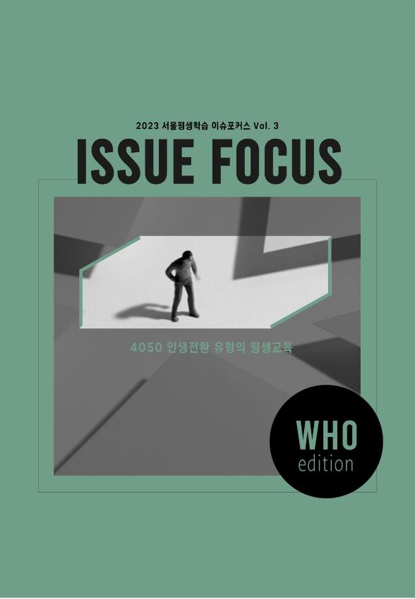 2023년도 제3호 서울평생학습 이슈포커스 브리프 기록으로 4050 인생전환 유형의 평생교육 관련 내용을 수록하고 있다.