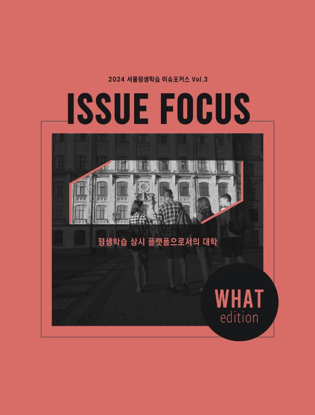 2024 서울평생학습 이슈포커스 제3호인 본 기록은 저출생, 고령화 사회로 진압함으로써 대학은 존폐위기를 맞이했는데, 이에 따라 평생학습 상시 플랫폼으로서 대학이 가질 수 있는 역할에 대해 고찰한다.