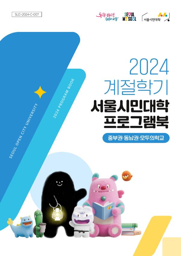 2024년도 서울시민대학 계절학기 개강을 알리면서 배포한 프로그램북이다. 각 서울시민대학의 위치 안내를 비롯하여 개설강좌에 대한 일람표가 수록되어있다.