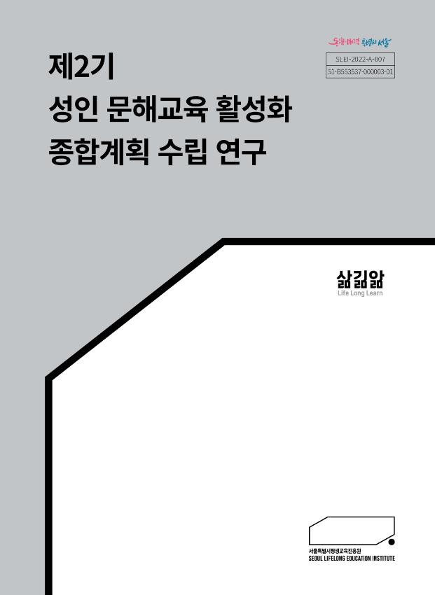 제2기 서울시의 성인문해교육 정책 수립을 위한 기초연구보고서이다. 문해학습자와 문해교유 기관이 배우고 가르치는데 어려움이 없는 환경을 조성하고, 서울시와 서울특별시평생교육진흥원, 나아가 각 자치구가 공공정책기관으로서 문해교육을 활성화시키기 위해 수행해야 할 중요한 우선 지원정책을 제안하고 있다.