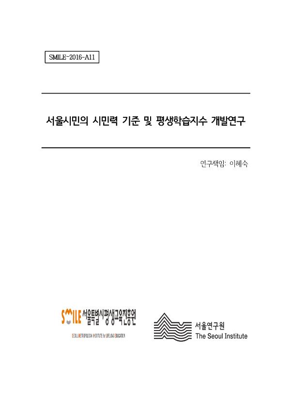 이에 본 연구에서는 서울시 평생학습 정책 추진실태와 성과진단, 정책 모니터링에 활용할 수 있는 서울시 평생학습지수 개발에 대한 최종보고 내용을 수록하고 있다.