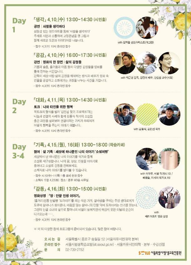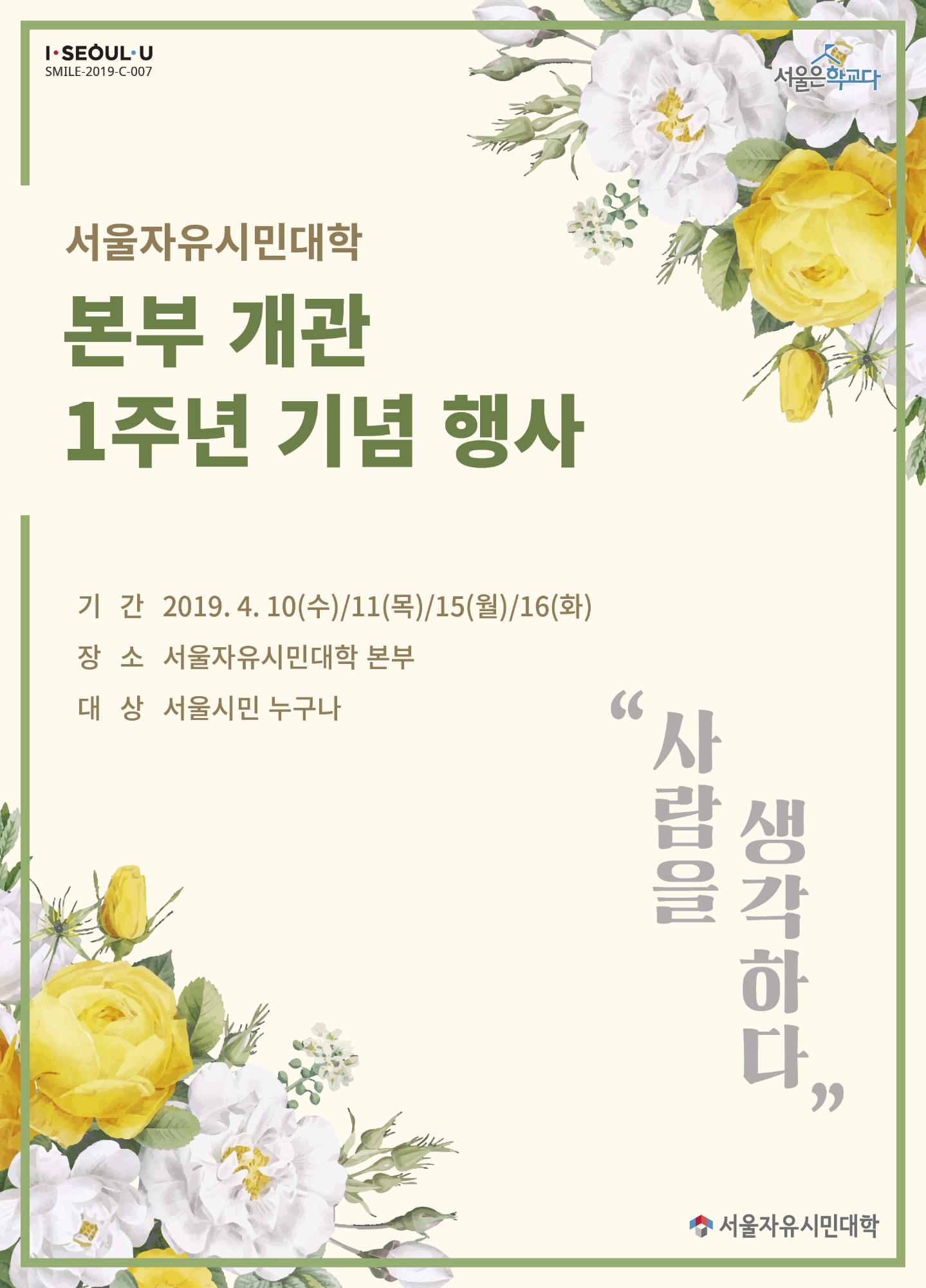 | 검색어 | 서울특별시평생교육진흥원,서울자유시민대학,서울시민대학,본부 개관,개관기념행사,1주년,기념행사,행사,리플렛,사람을 생각하다,초대장 |