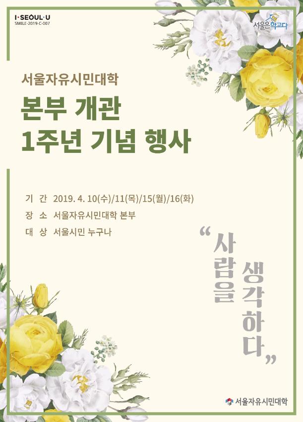 2019년 서울자유시민대학 본부 개관 1주년 기념 행사 리플렛이다.