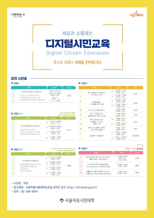 2020 서울시민대학 디지털시민교육 시간표