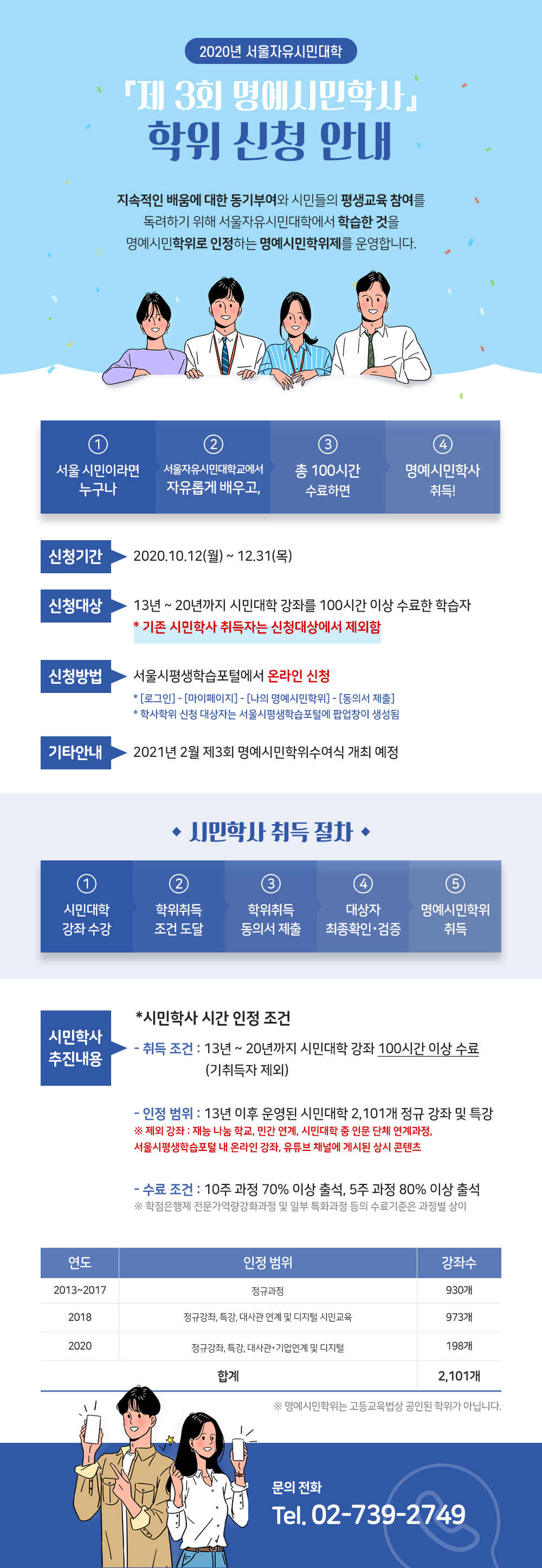 2020년 서울시민대학 제3회 명예시민학사 학위 신청에 대한 홍보 포스터이다.
