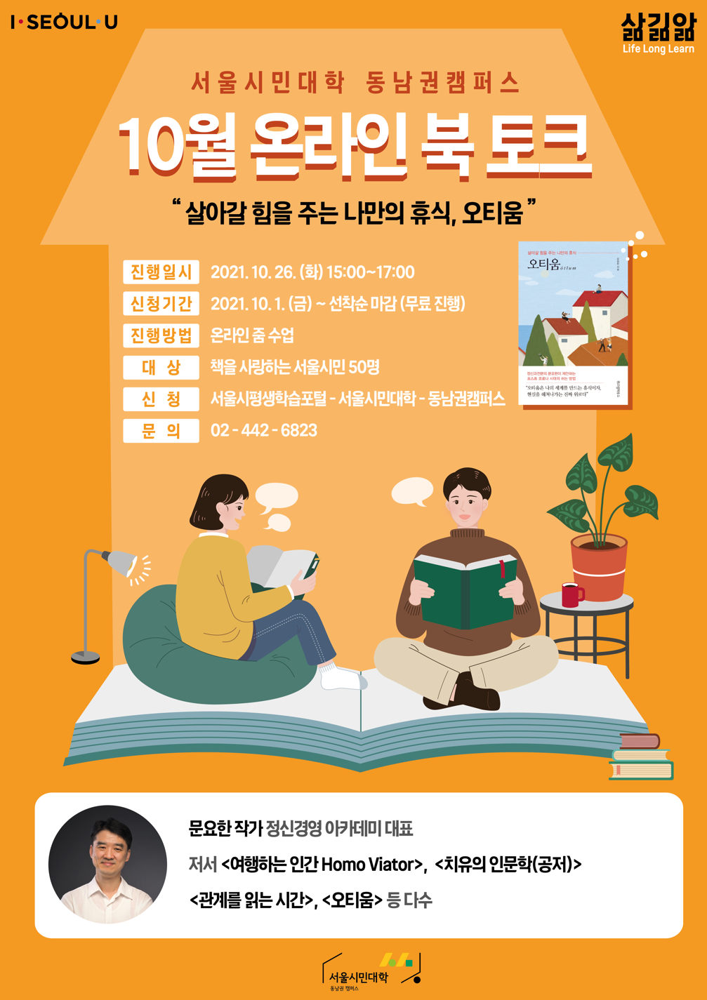 2021 서울시민대학 동남권캠퍼스 10월 온라인 북 토크 안내 포스터