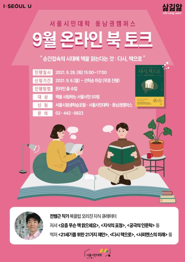 2021 서울시민대학 동남권캠퍼스 9월 온라인 북 토크 안내 포스터