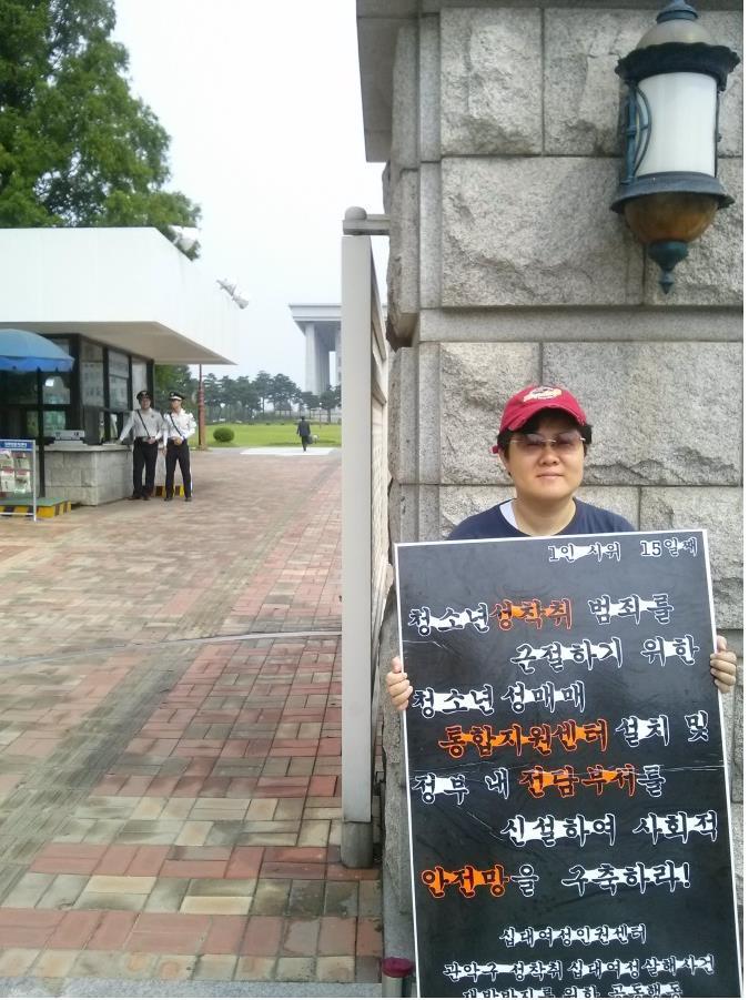 6월 5일부터 100일동안 국회 앞에서 1인시위를 통해 아동·청소년 성착취 근절을 촉구했다.