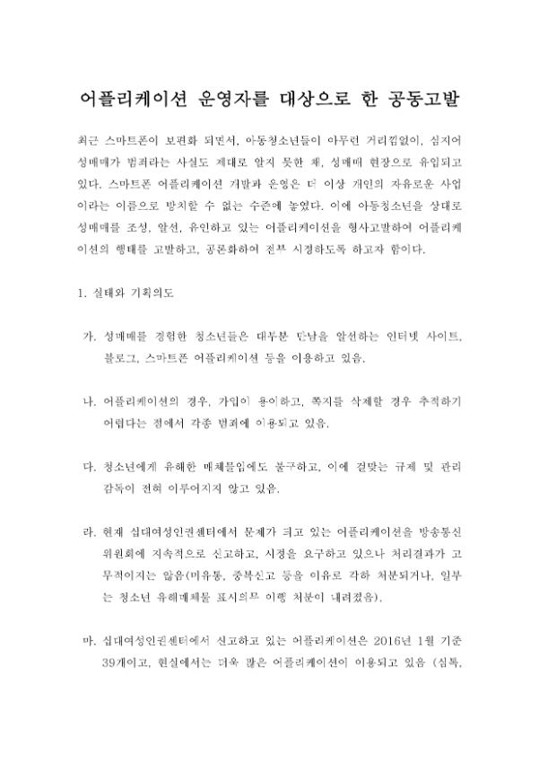 | 검색어 | 십대여성인권센터,채팅 어플리케이션,채팅 어플리케이션 운영자 공동고발,공동행동,채팅 어플리케이션 운영자 공동고발 기획안,기획안 |