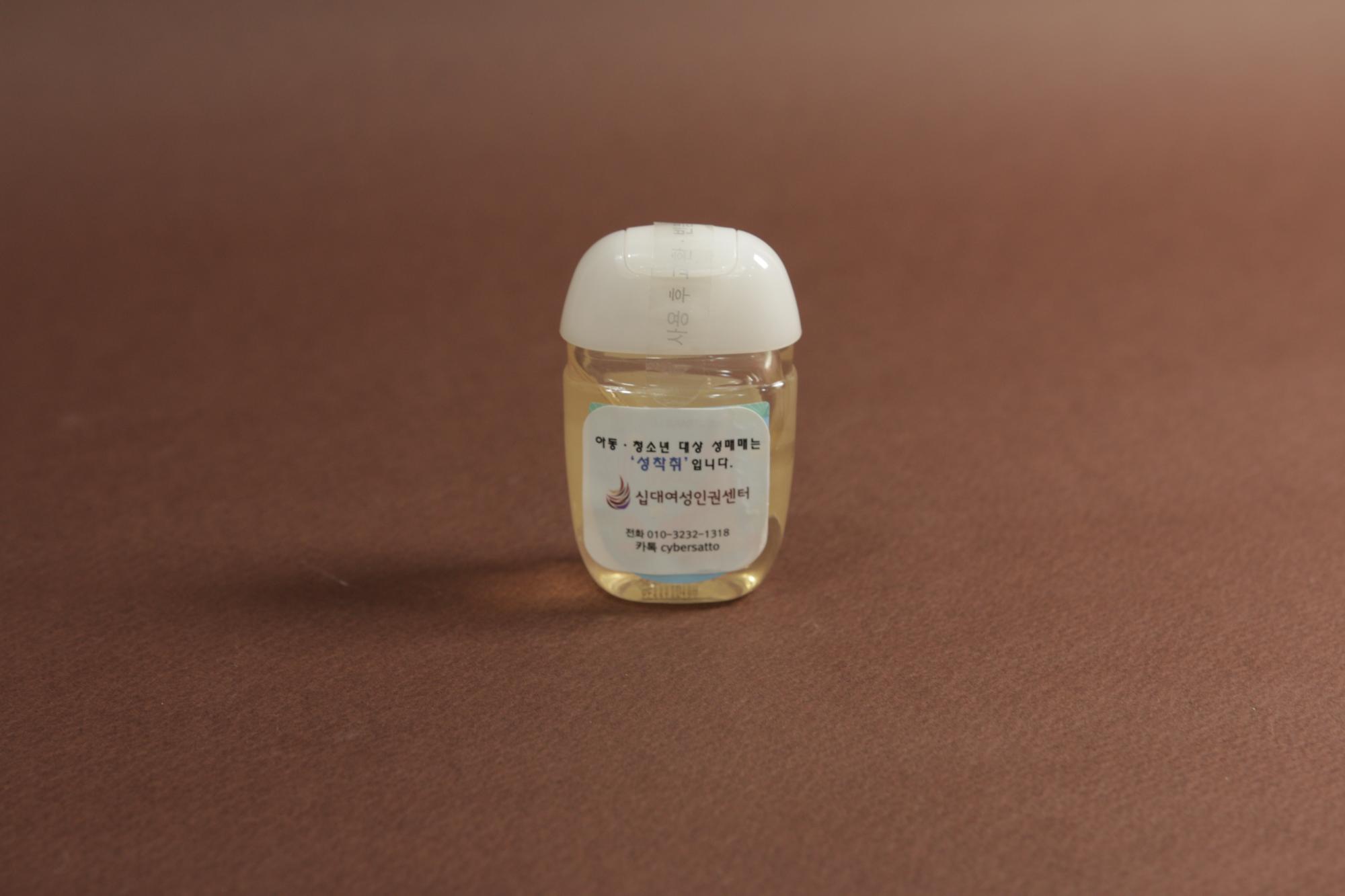 사이버또래상담사업 2019년 제작한 홍보물품 손세정제이다.