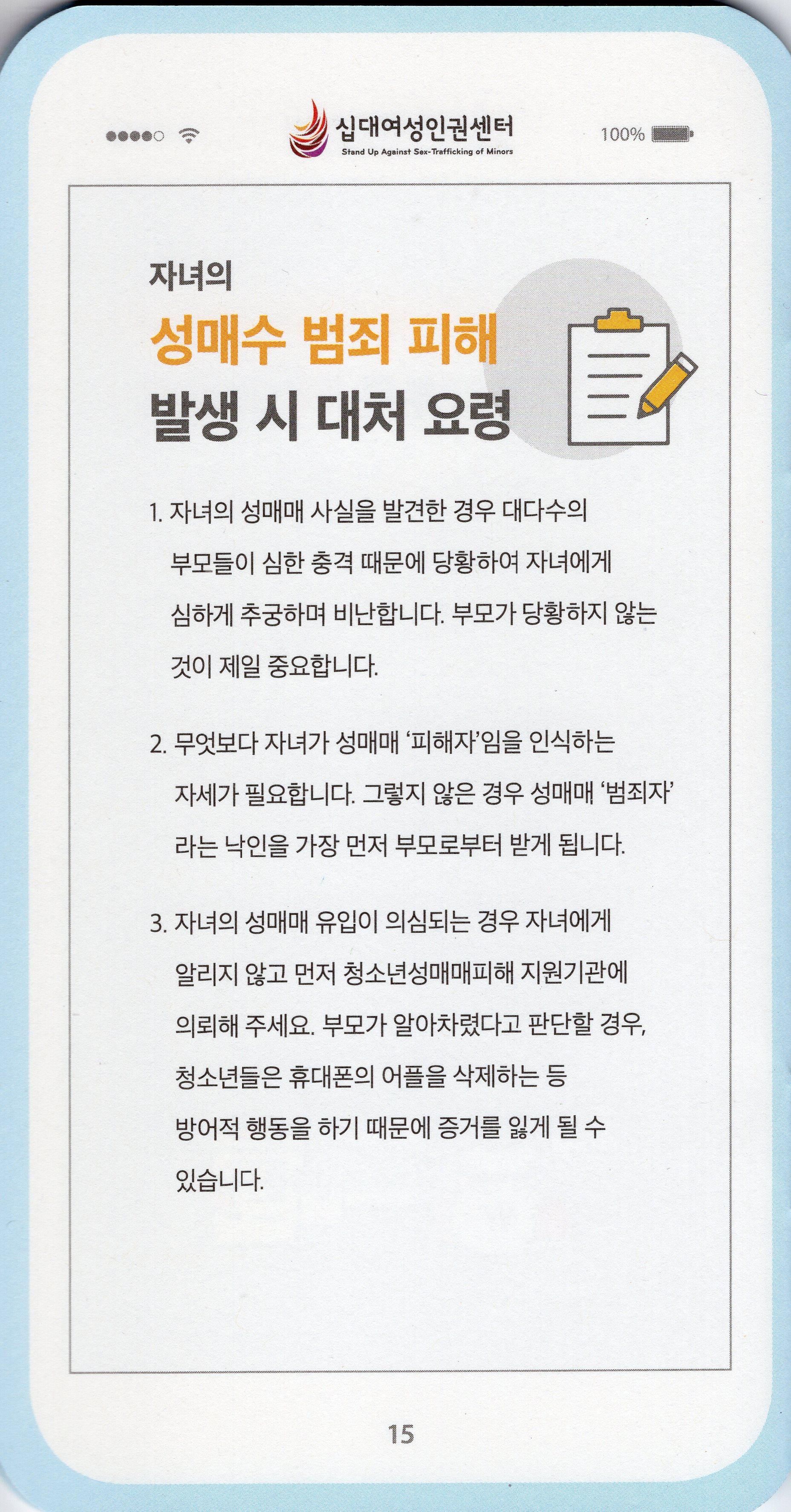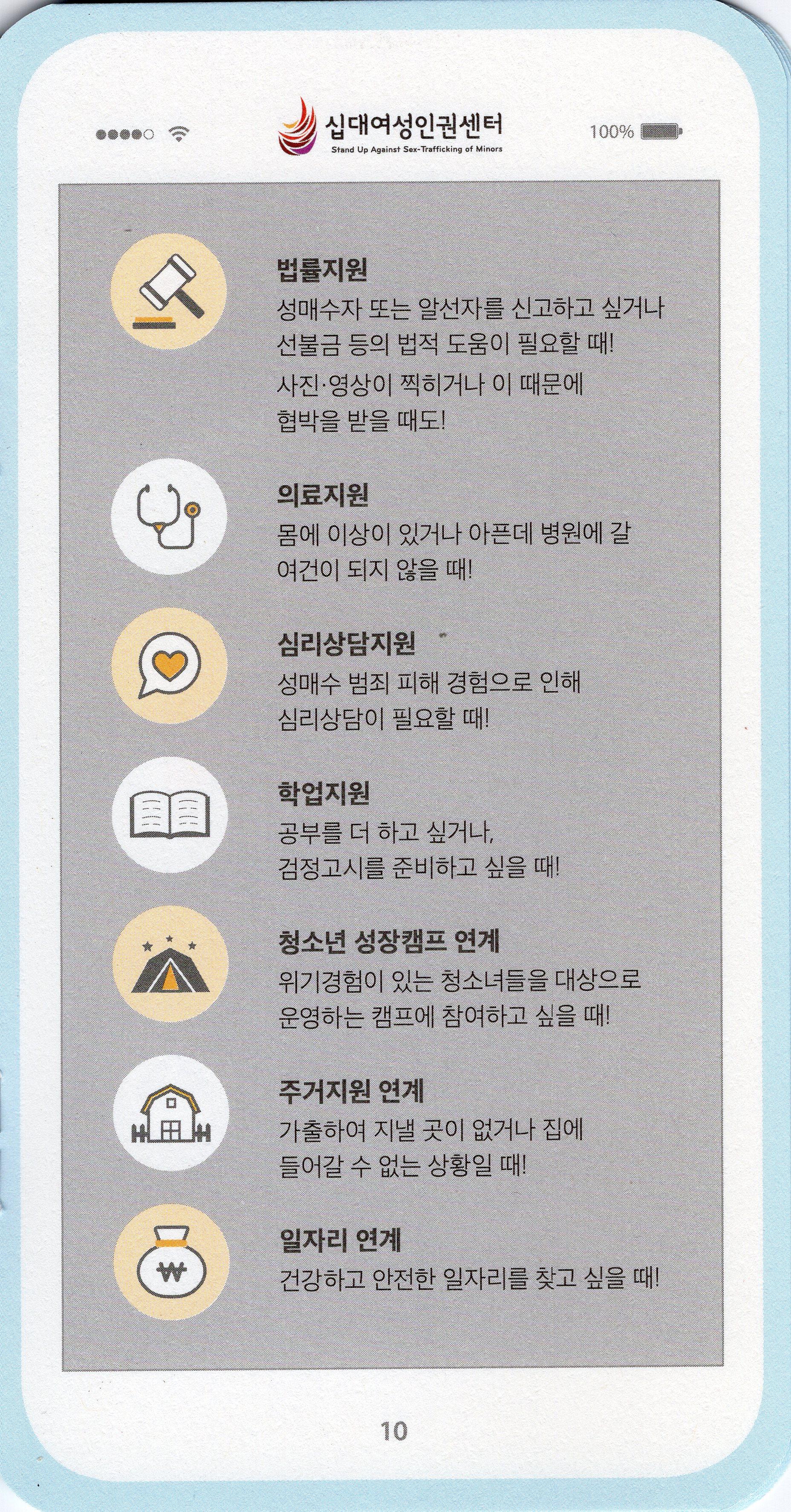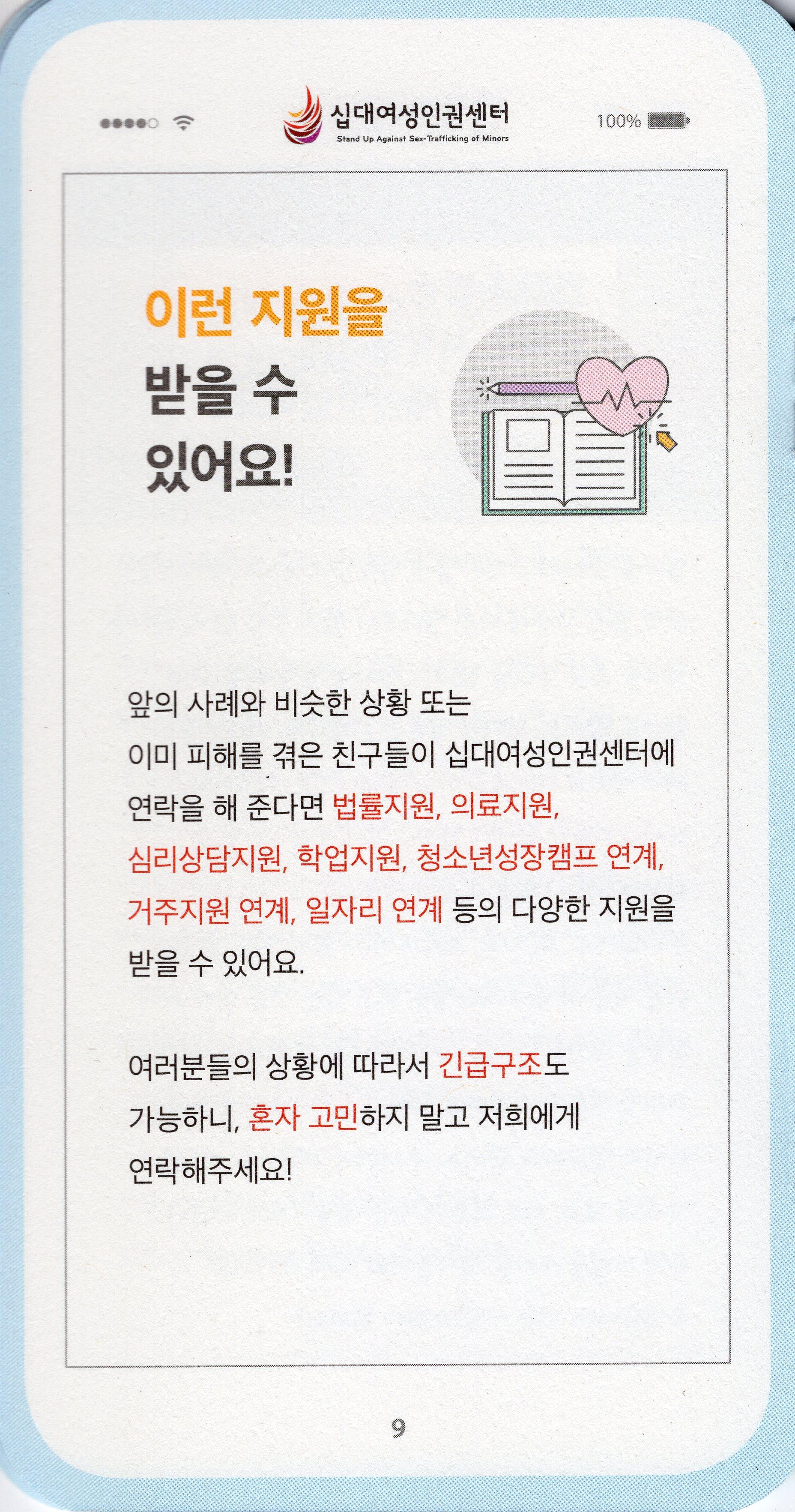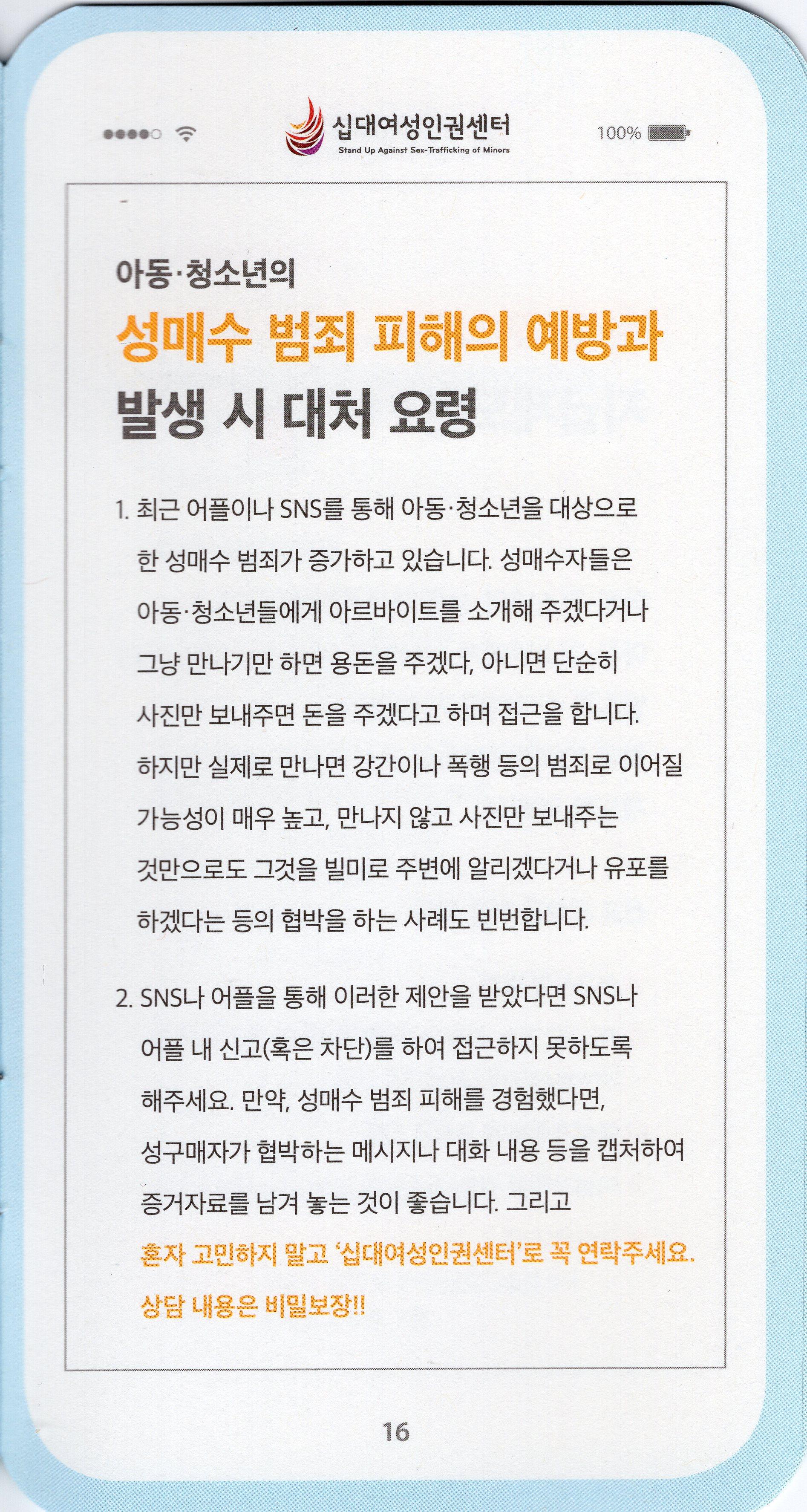 십대여성인권센터가 2016년 제작한 스마트폰 모양의 아동청소년 성착취 피해 예방 가이드북이다.
