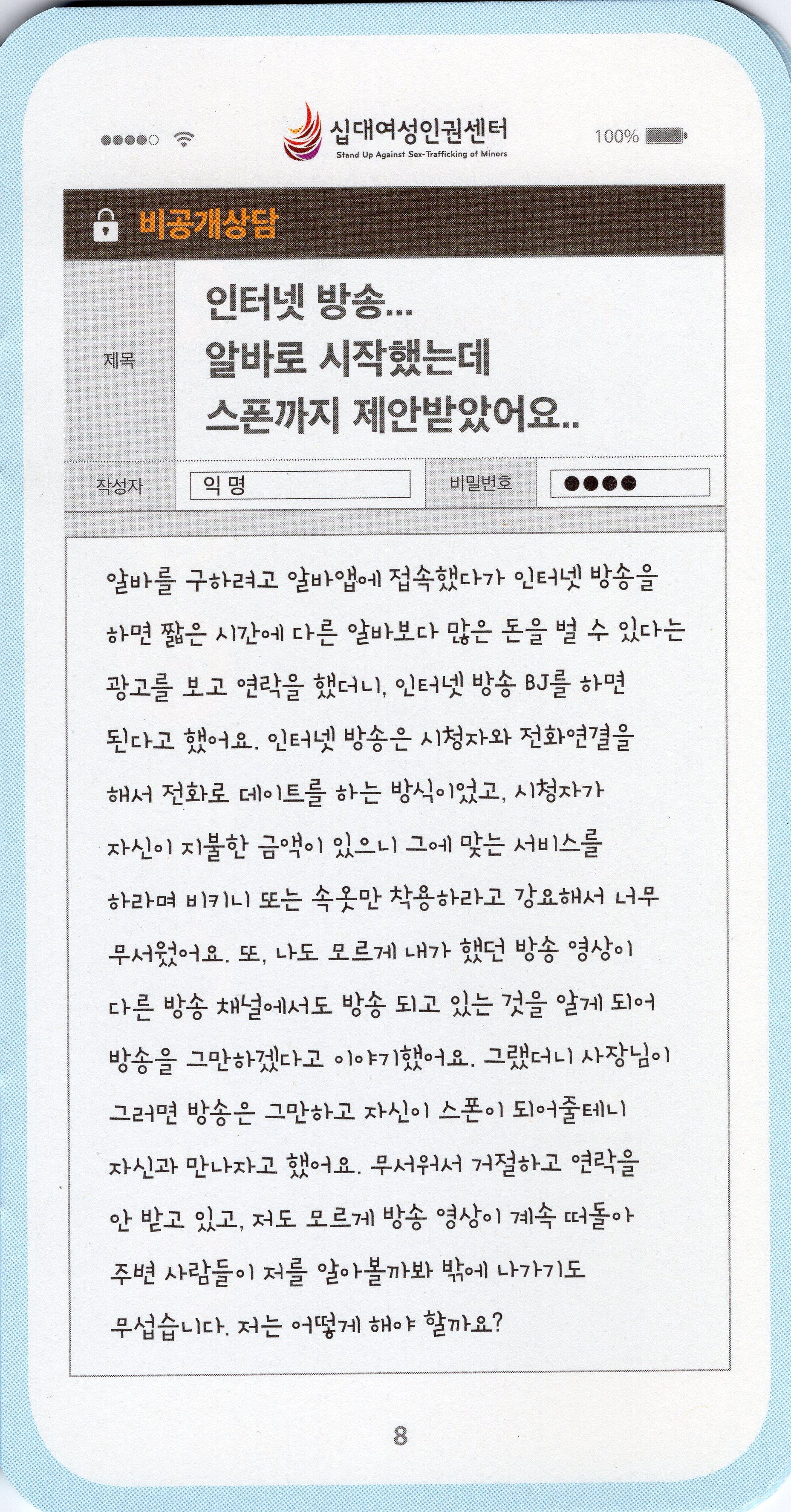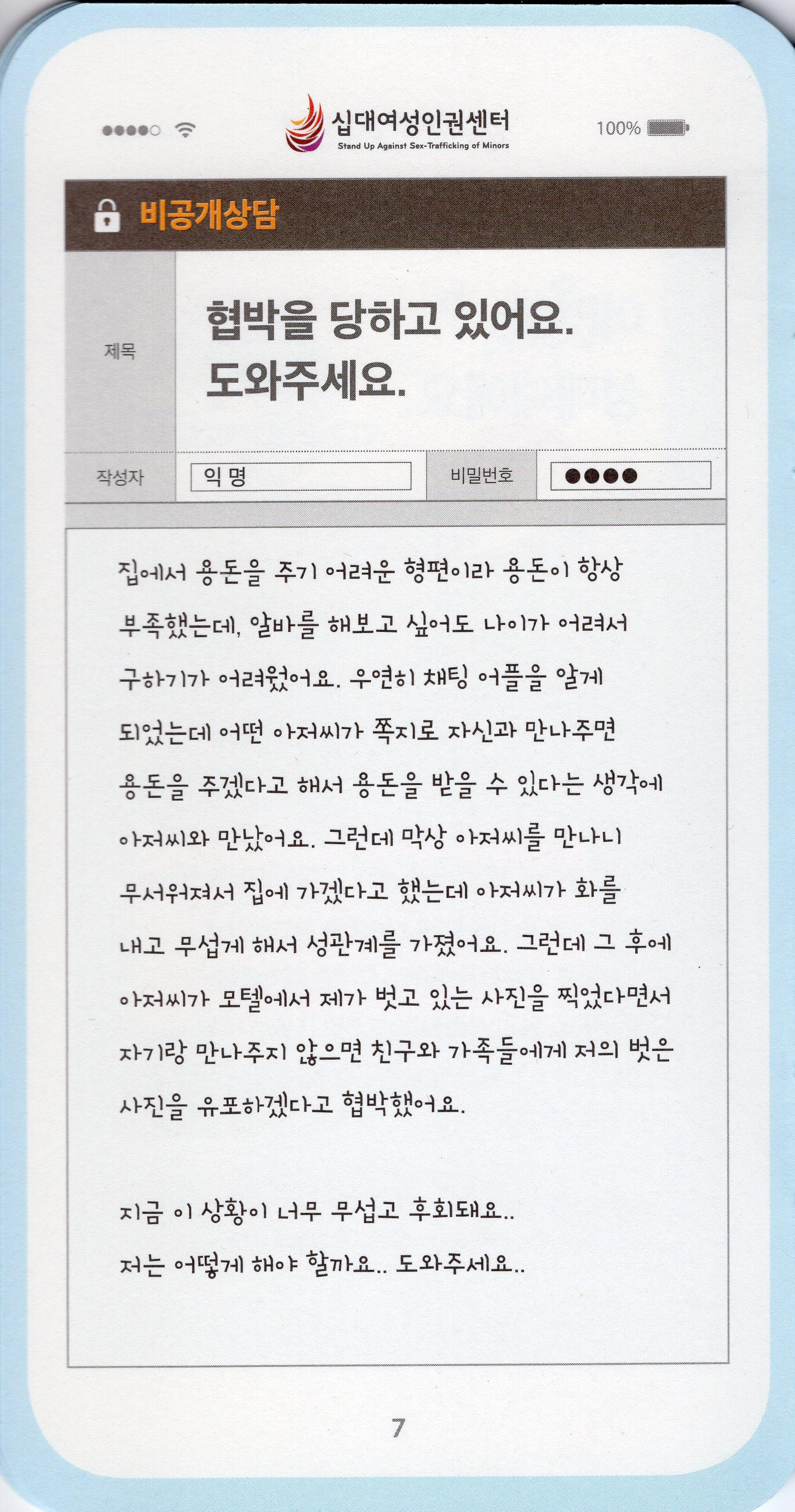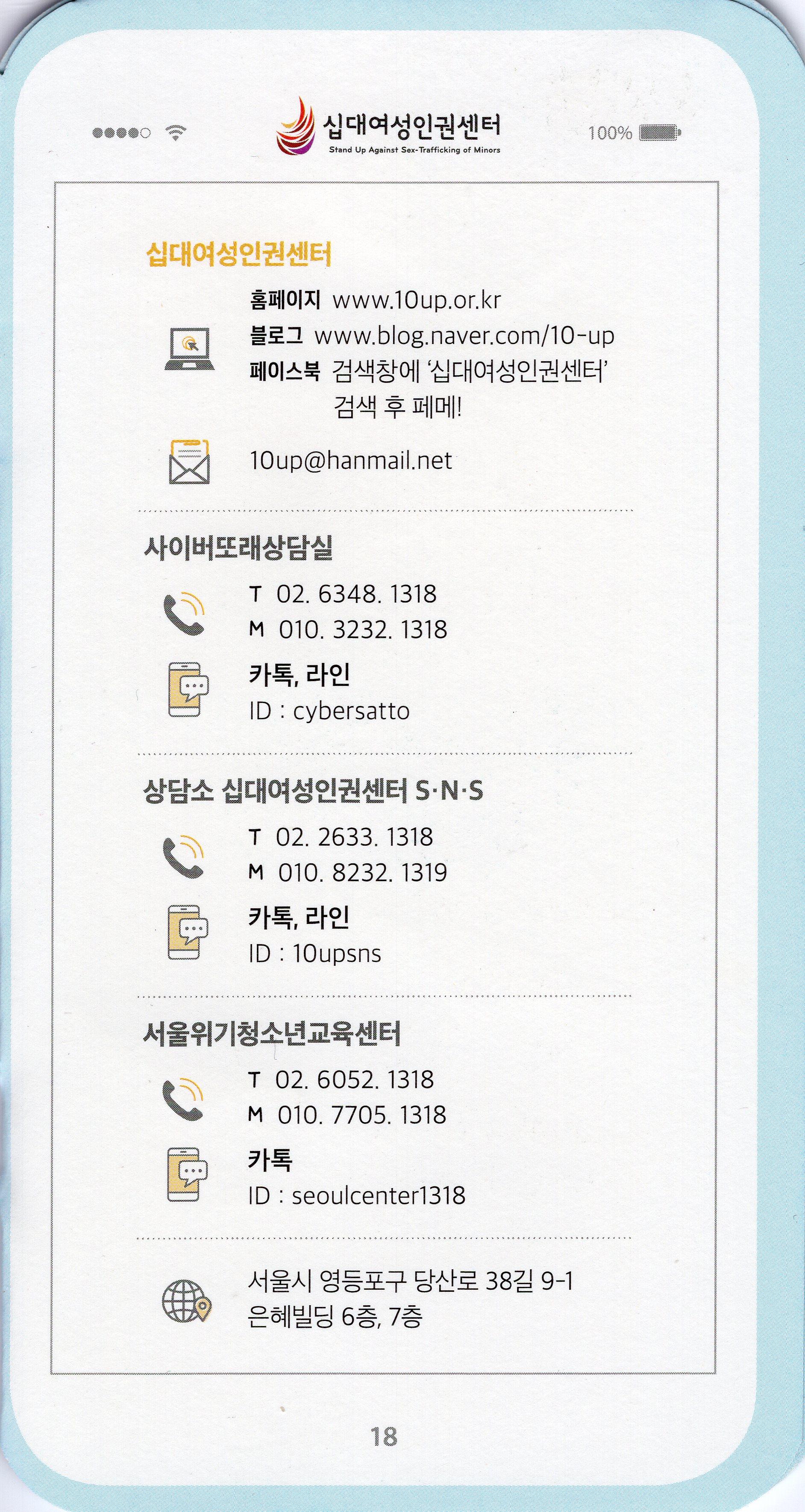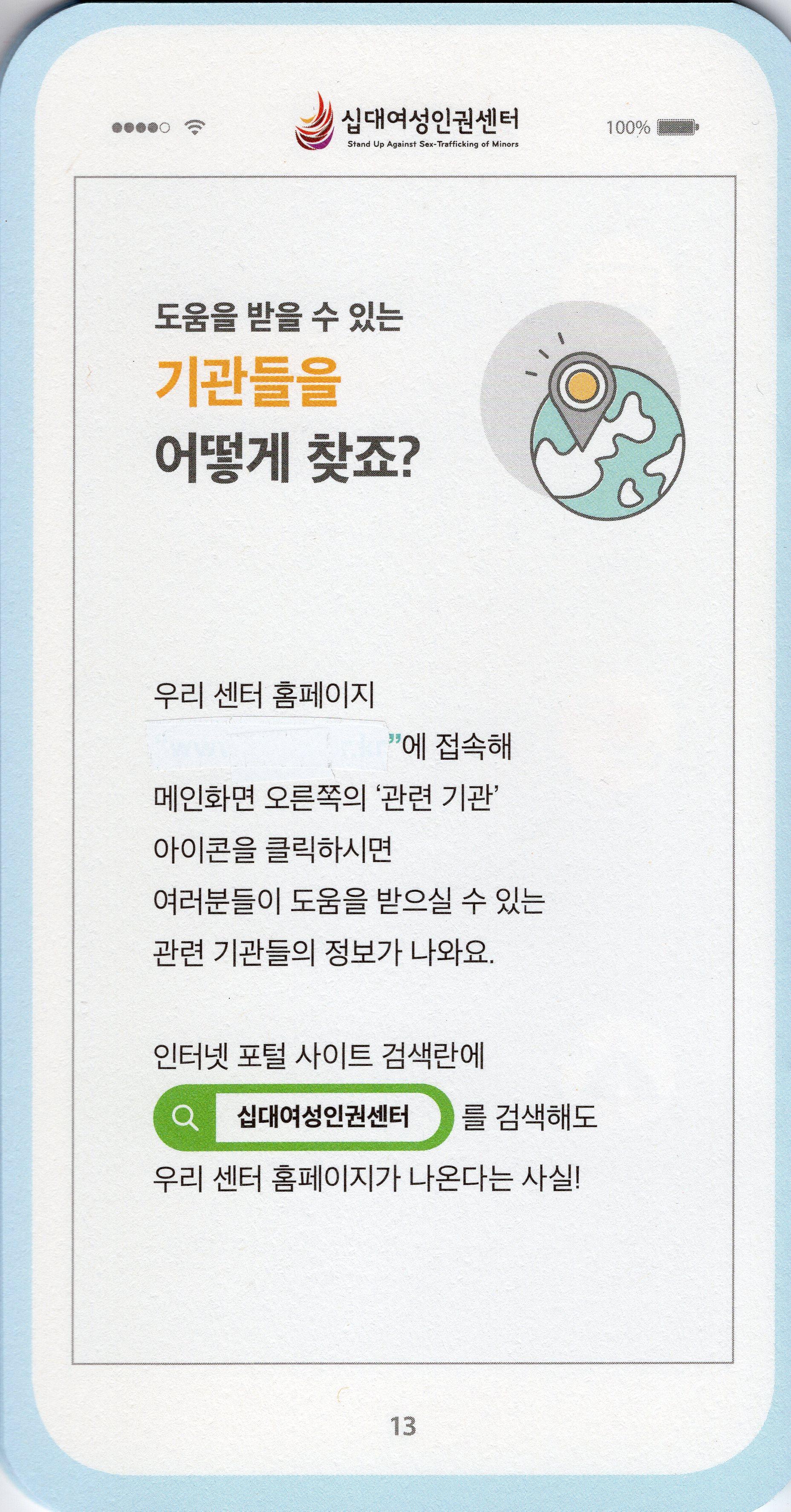 십대여성인권센터가 2016년 제작한 스마트폰 모양의 아동청소년 성착취 피해 예방 가이드북이다.