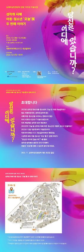 성착취 피해 아동청소년 '오늘'展, 두 번째 이야기 - 당신은 어디에 있습니까?의 전시회 초정장이다.