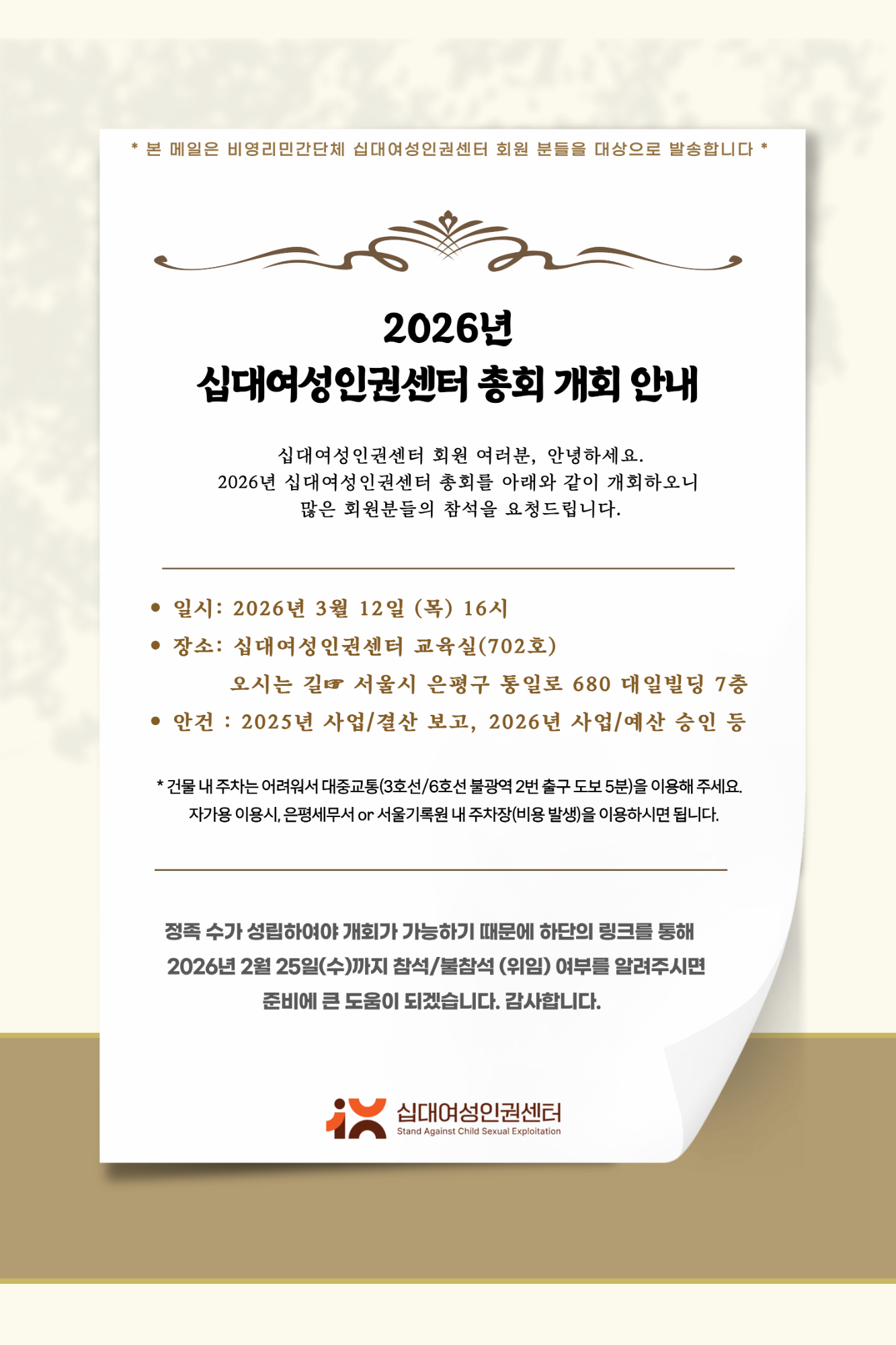 2026년 십대여성인권센터 총회 개회 안내문(회원 대상)