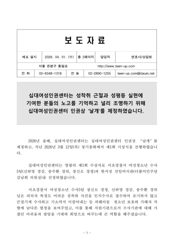 2026년 4월 1일 십대여성인권센터에서 배포한