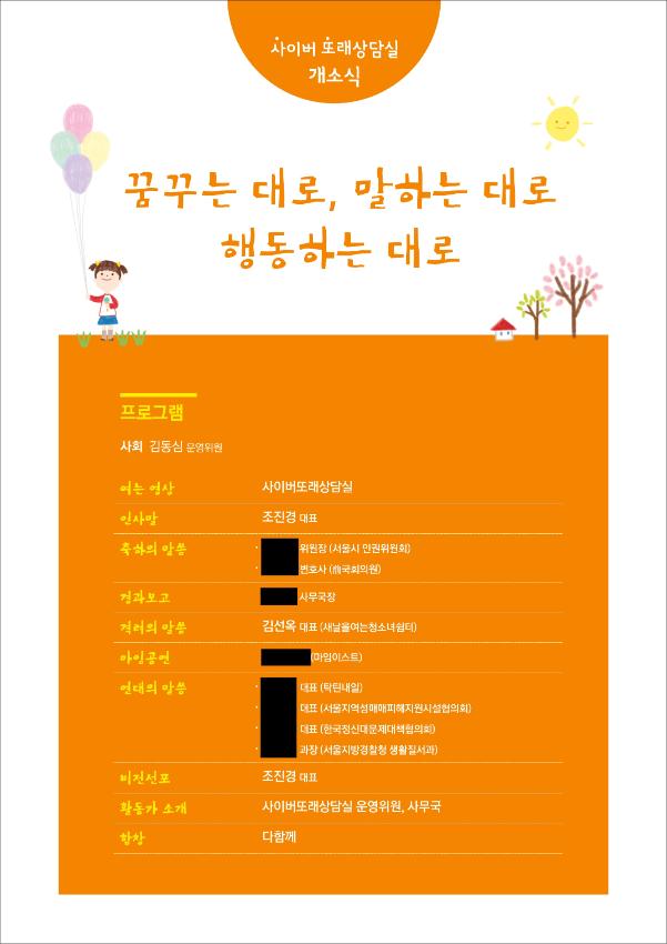 2013년 사이버또래상담실 개소식 문서이다.