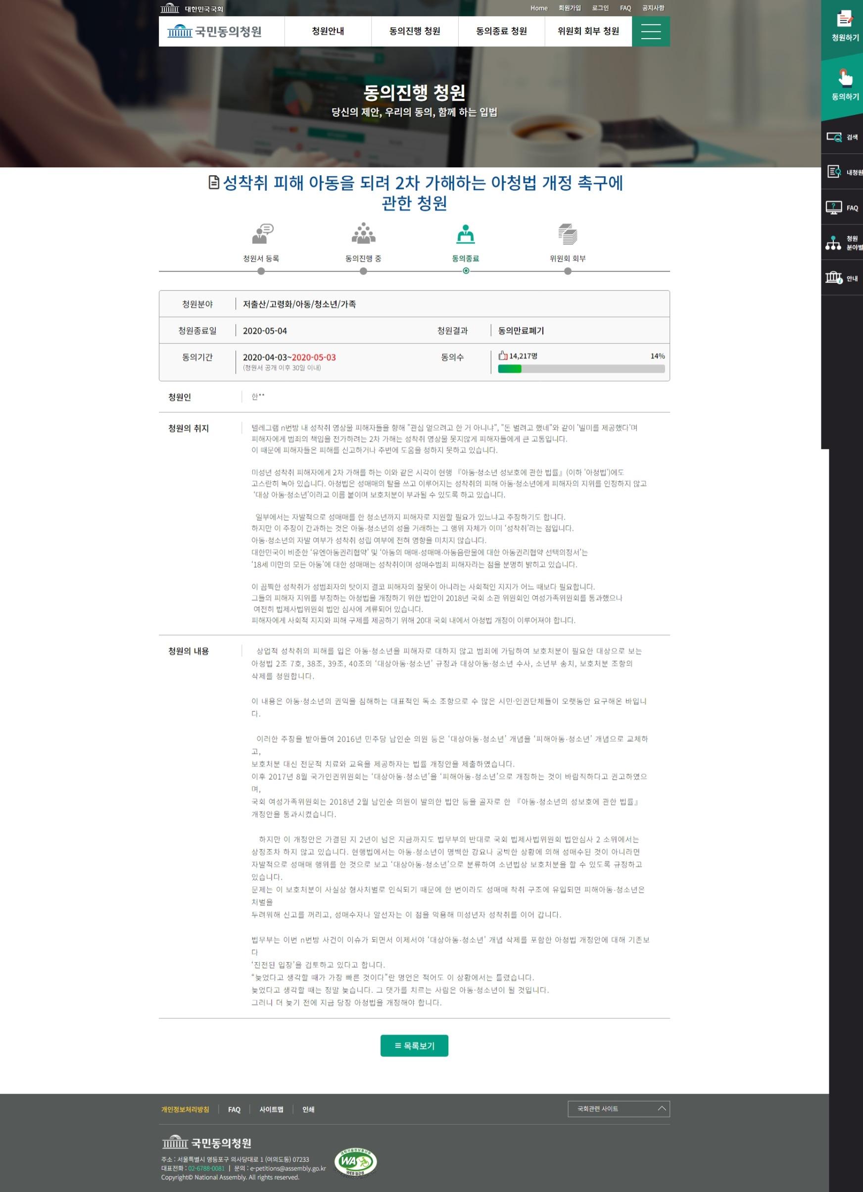 공대위는 아청법 개정에 관한 청원을 국민동의청원 홈페이지에 게시하였다.