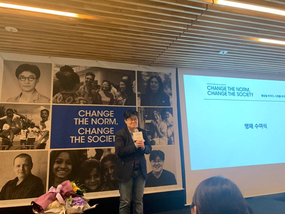 사진은 십대여성인권센터 조진경 대표가 아쇼카 펠로우에 선정된 모습을 촬영하였다.