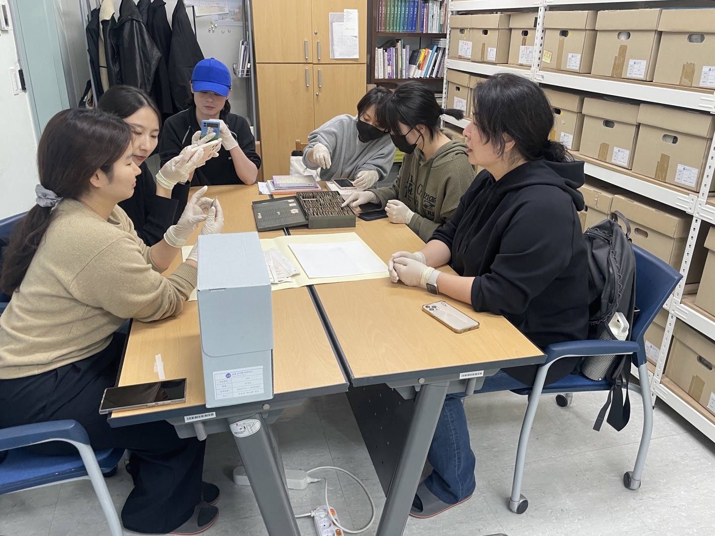 문화재보존학과 학생들은 교수님의 지도와 아키비스트의 안내를 받아 수장고 곳곳을 돌아보며 보존 환경을 세밀히 관찰했고, 조심스러운 손길로 각종 사료의 물리적·화학적 상태를 점검했습니다. 그리고 일주일 뒤, 강의실에서 다시 모여 각자가 수장고에서 발견한 사실과 추가로 조사한 것을 종합하여 보존 환경을 개선하기 위한 구체적인 의견을 공유했습니다.