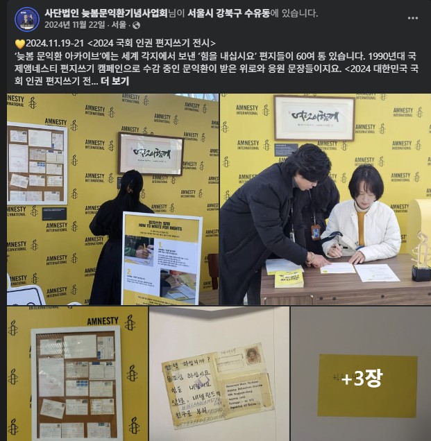 ◇늦봄기념사업회 페이스북에 소개된 “국회 인권 편지쓰기 전시” 소식