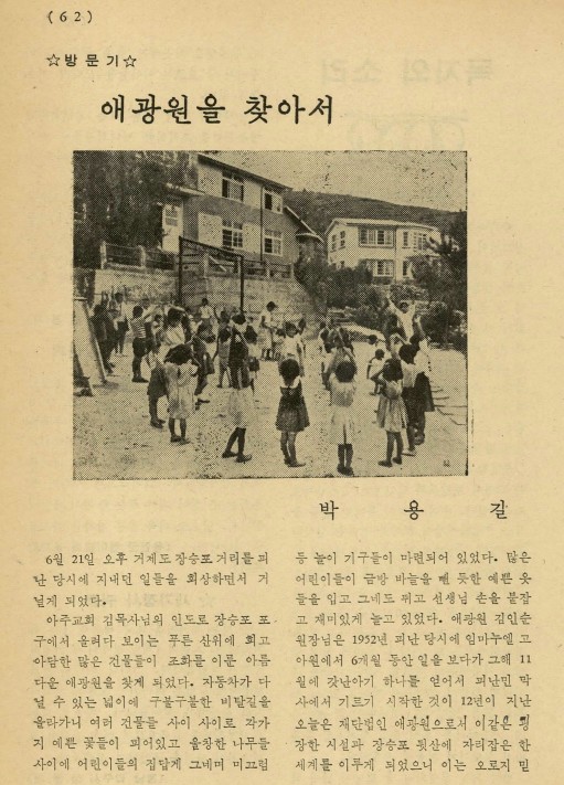 ◇ 1964년 6월 여행 후 봄길이 남긴 거제도 애광원 방문기. 운영위원으로 활동하던 『새가정』 1964년 9월호에 실렸다. 글 속의 김인순(김임순의 오기임) 애광원장은 1925년생으로, 2024년 한신대학교에서 ‘한신상’을 수상했다.