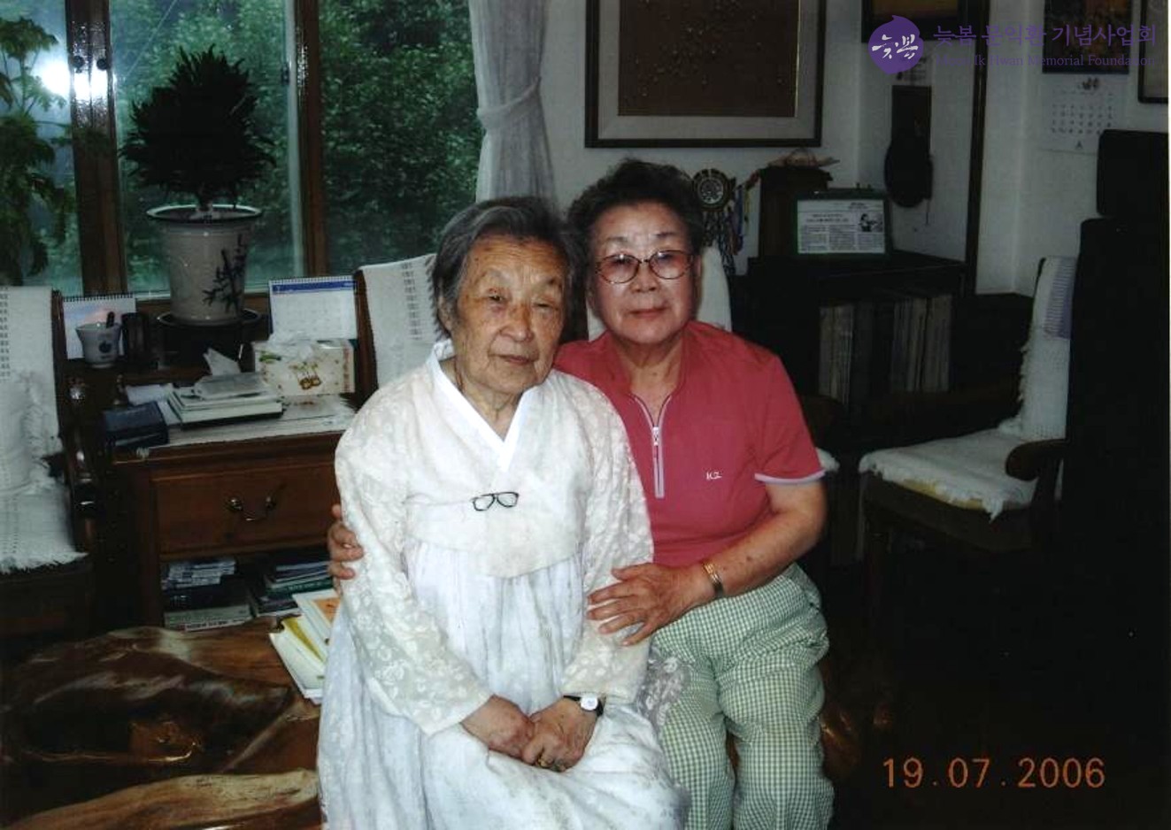 ◇ 2006년 7월 19일 다시 애광원을 방문한 박용길 장로가 김임순 원장과 방문 기념사진을 찍었다.