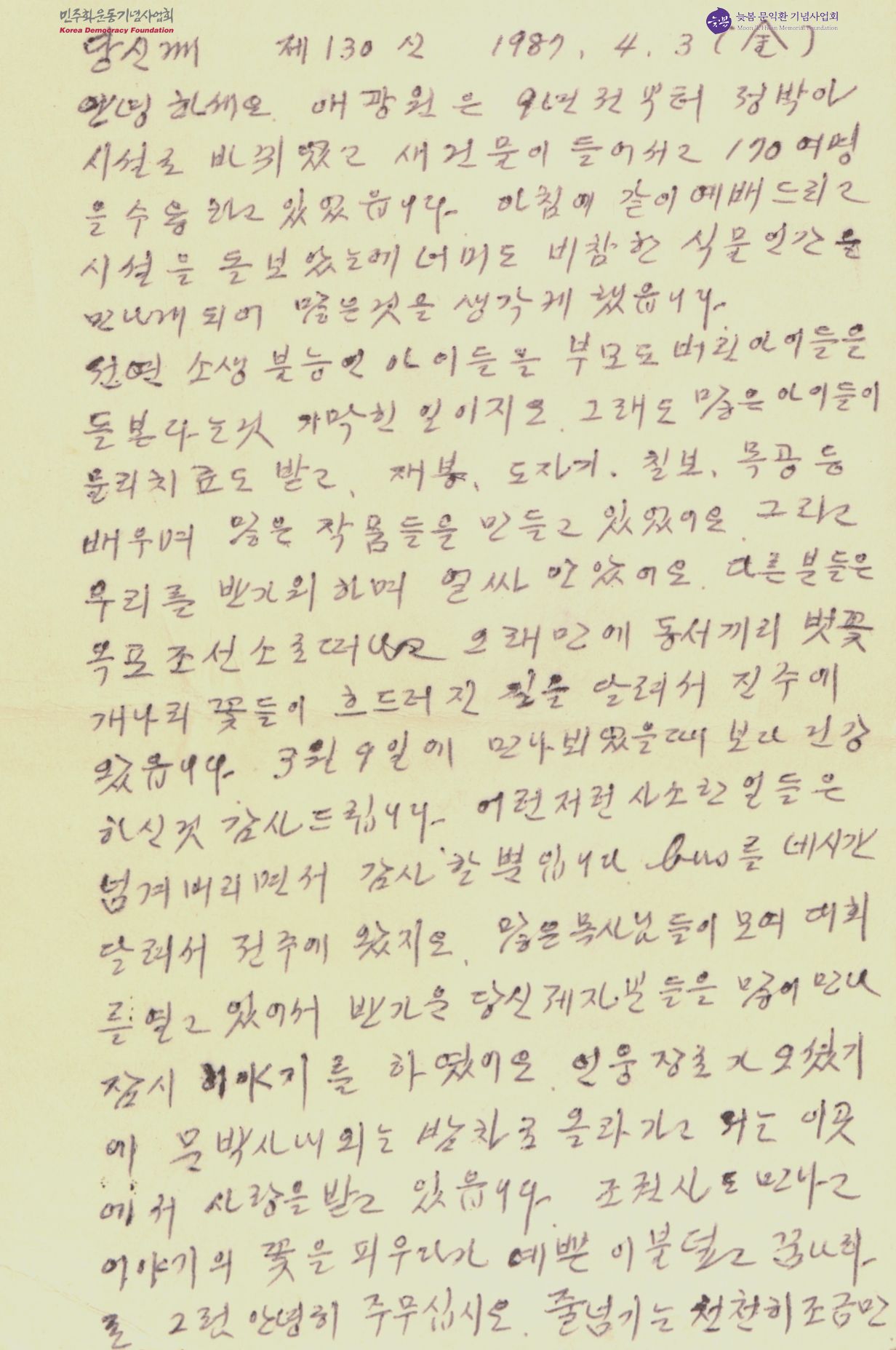 ◇박용길이 1987년 옥중의 문익환 목사에게 보낸 편지.