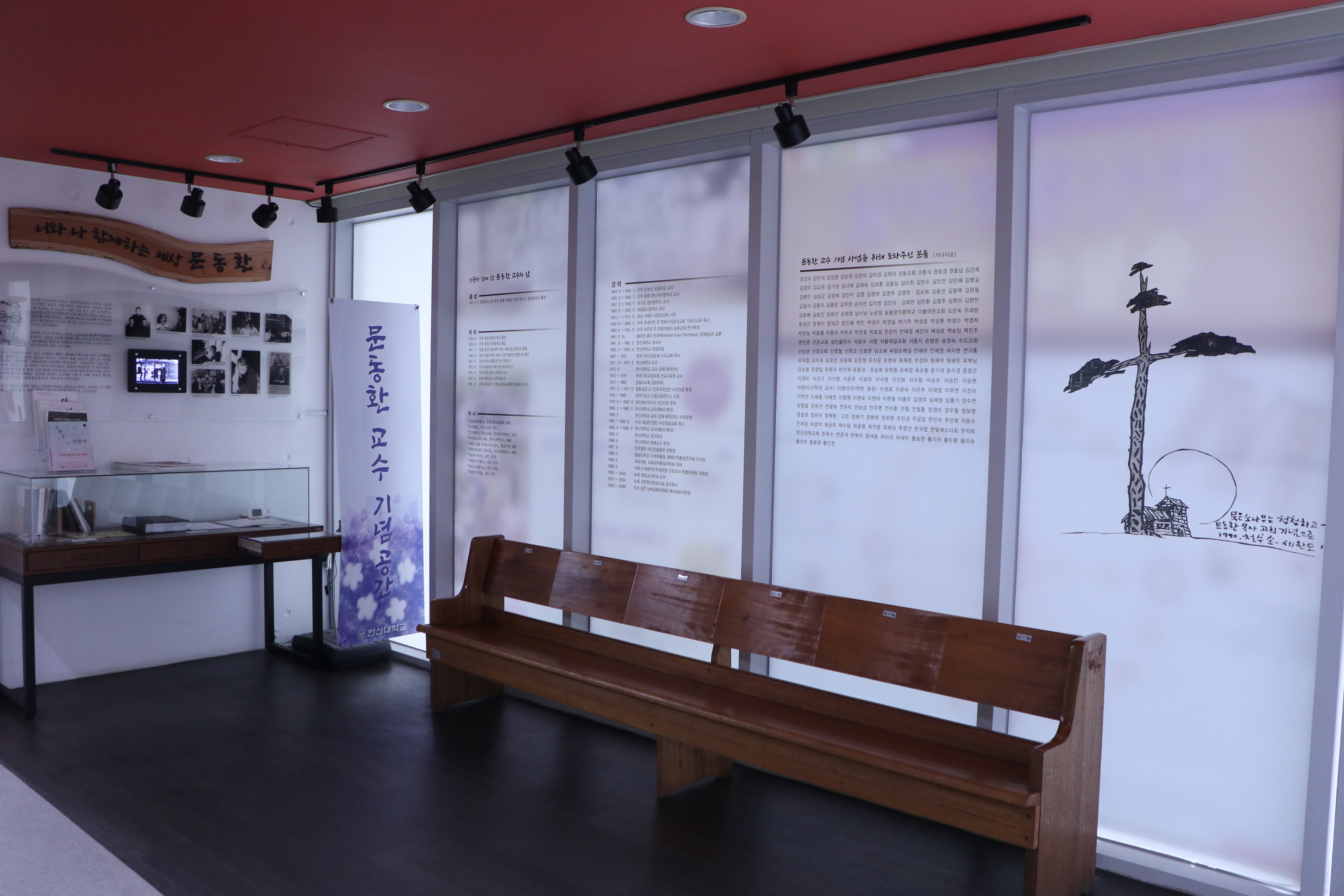 ◇한신대 경기캠퍼스 늦봄관 4층 복도에 마련된 문동환 교수 기념공간.