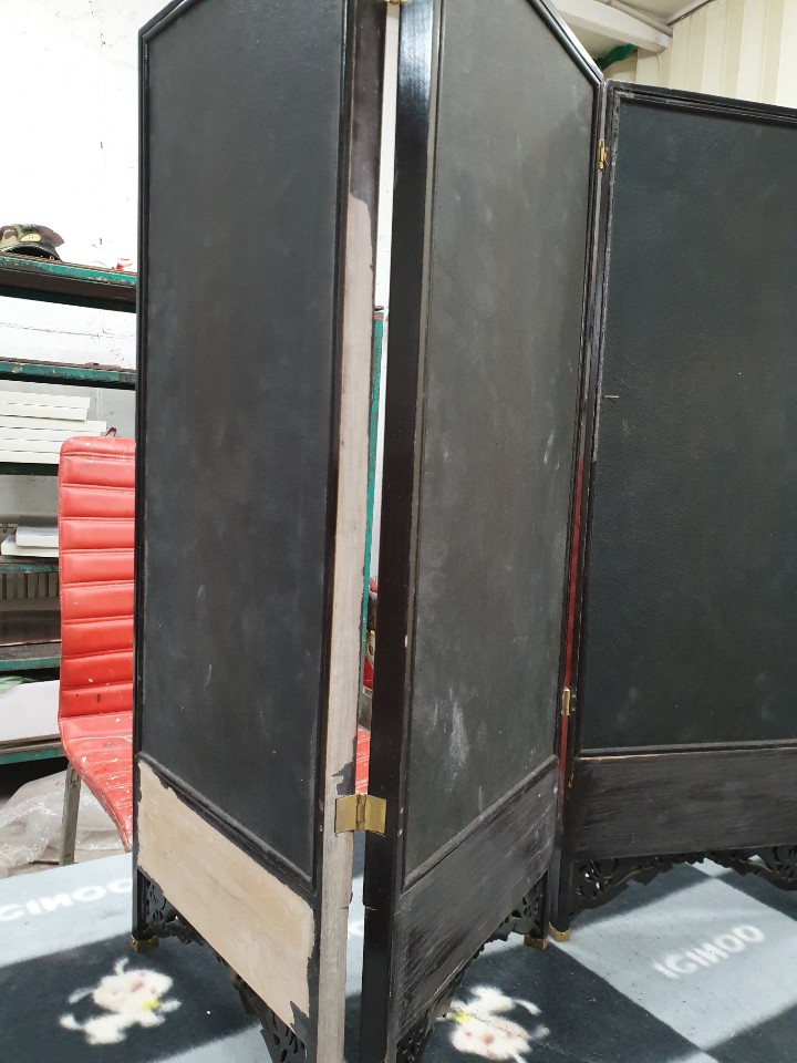 ◇깨진 나무조각을 붙이고 토회로 보수한 병풍 뒷면