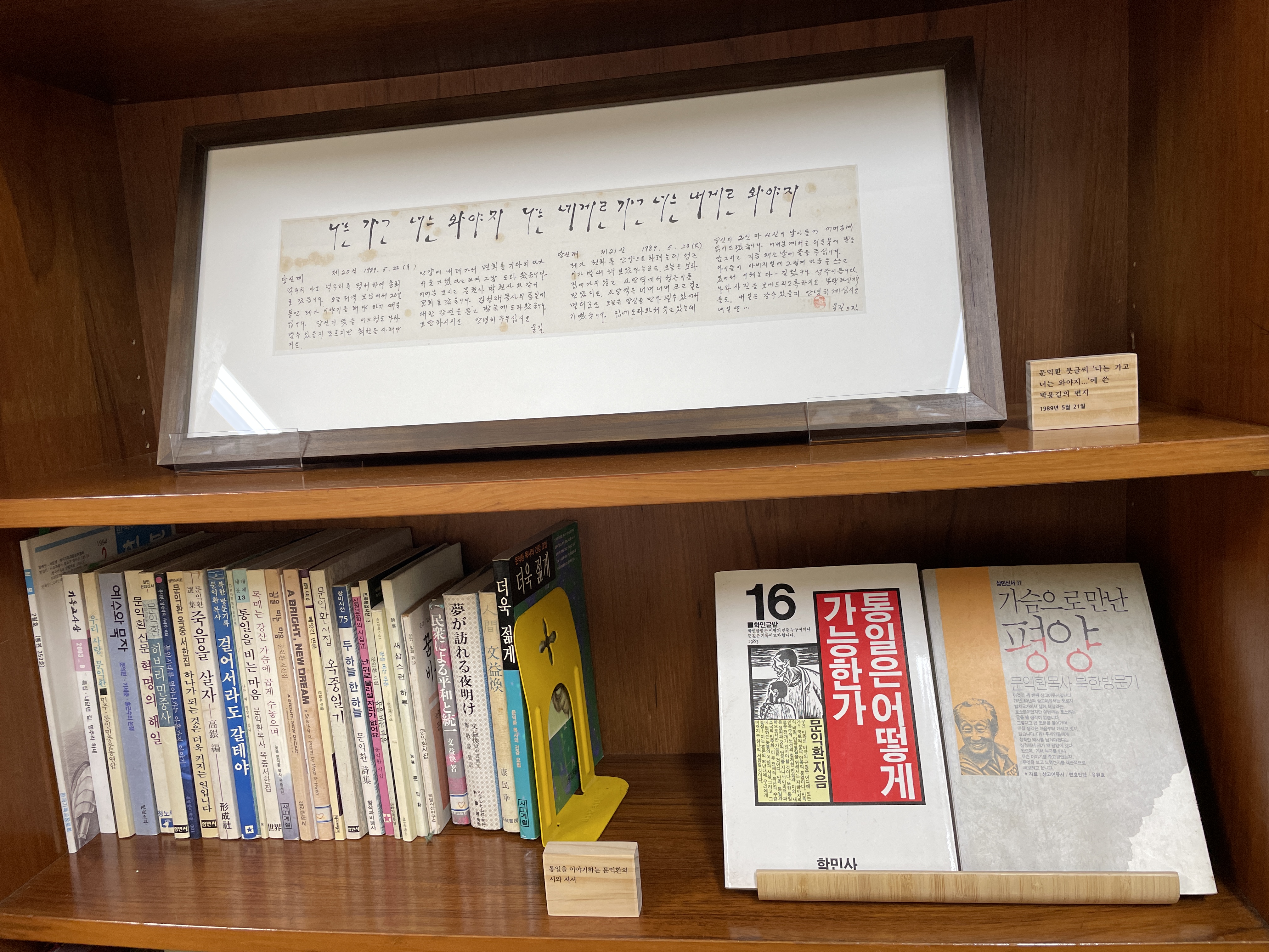 - 문익환 10주기 추모 북측 대표단이 선물한 문익환, 박용길 부부 아호 족자
