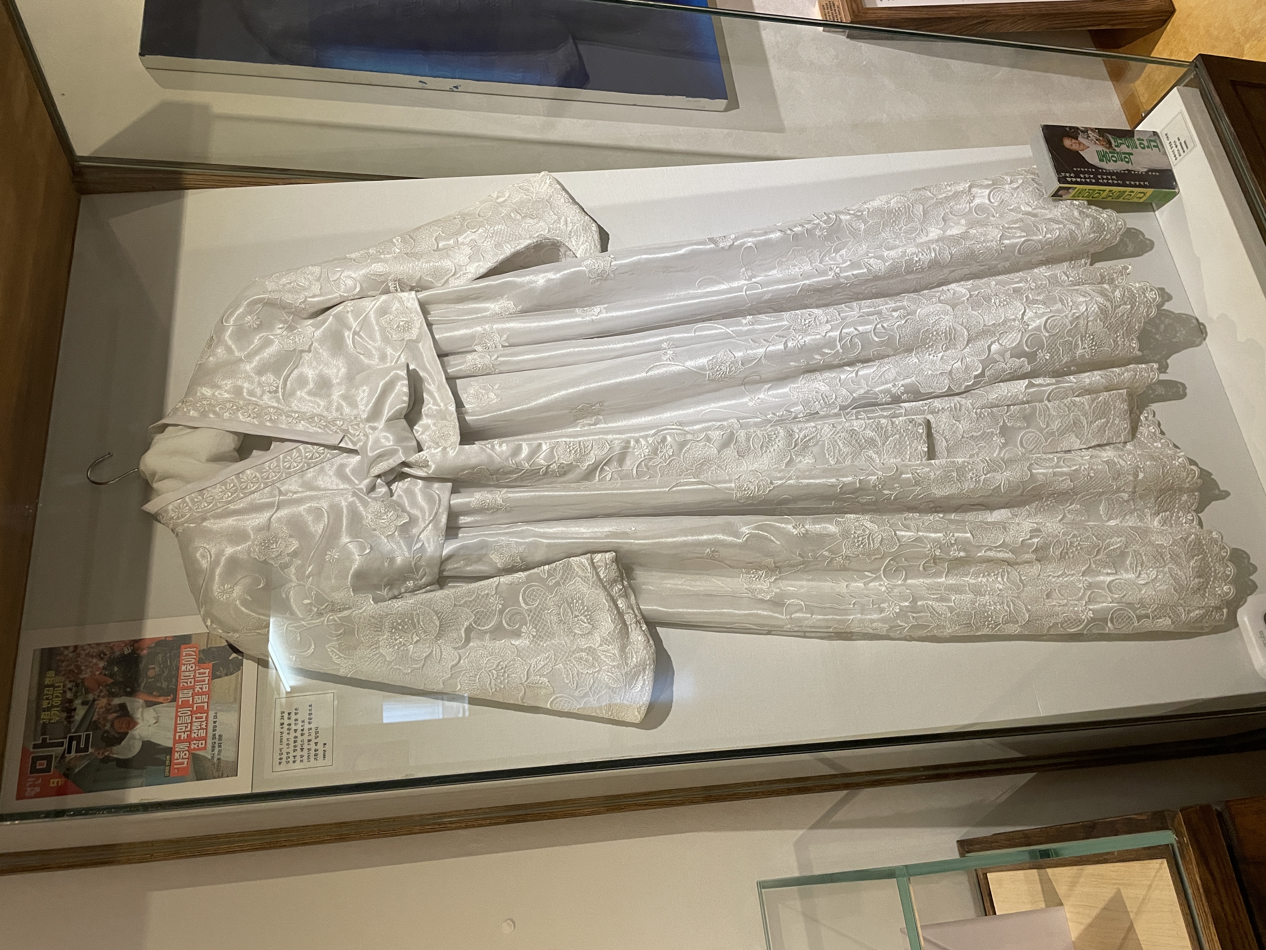 - 박용길이 1995년 6월 28일 김일성 1주기 조문을 위해 북에 방문했을 때 선물 받은 모란 레이스 한복으로 1995년 7월 31일 판문점으로 귀환할 때 입었다. 1995년 7월