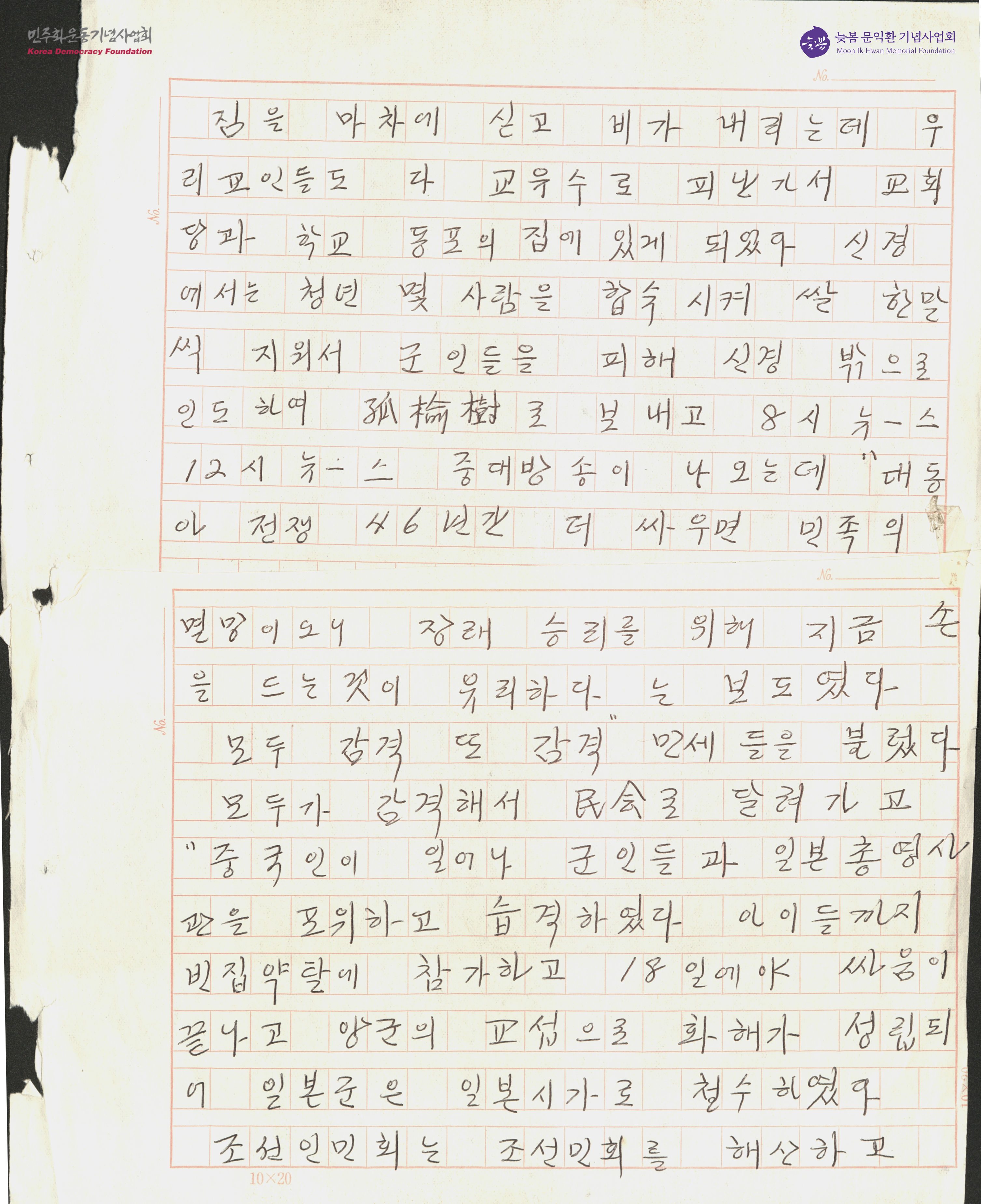 의 죽음, 해방과 피난길, 38선을 넘은 이야기 등을 기록했다.