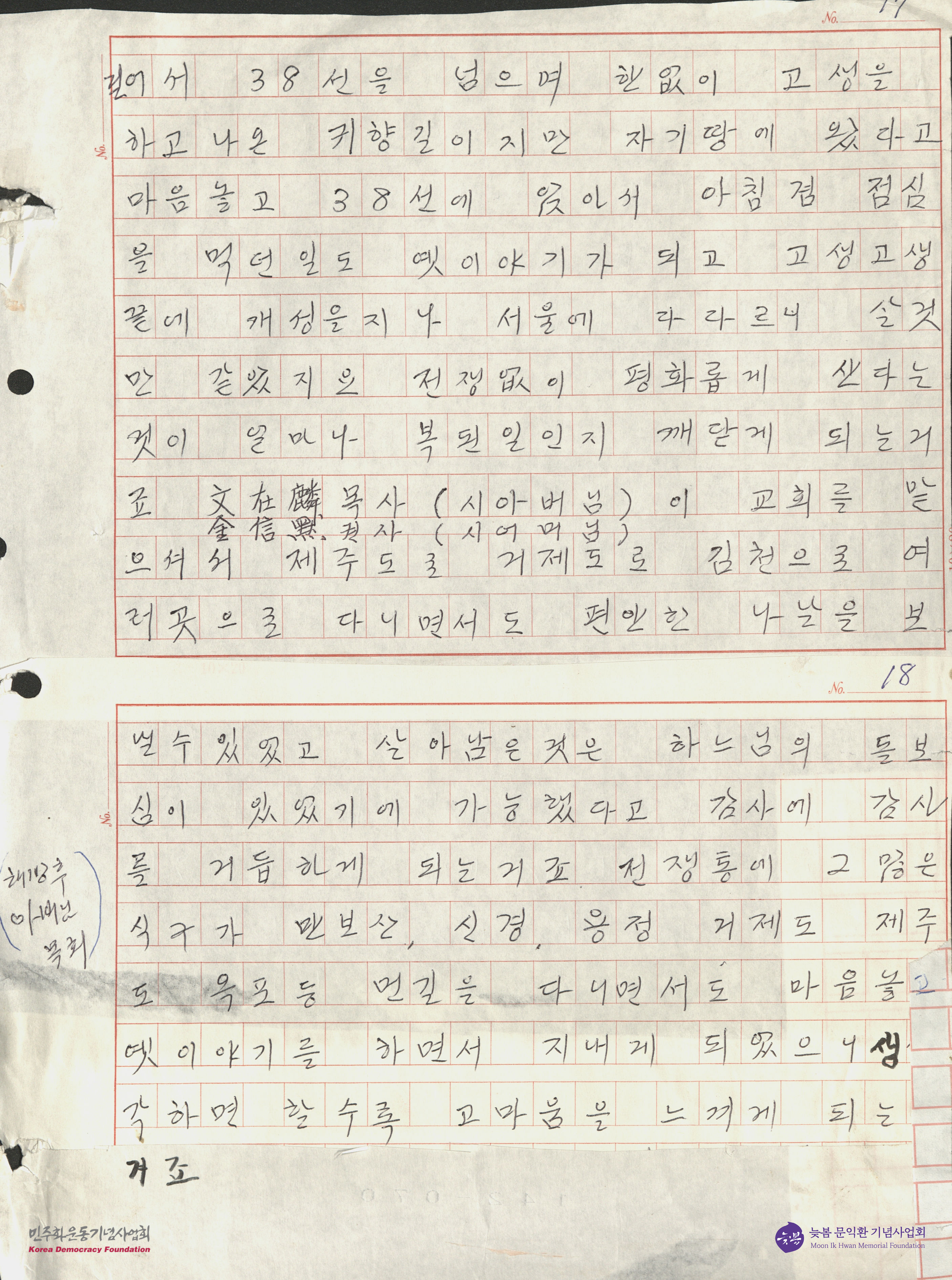 두양띠 박용길 김신묵 박용길이 옥중으로 보낸 19910716편지