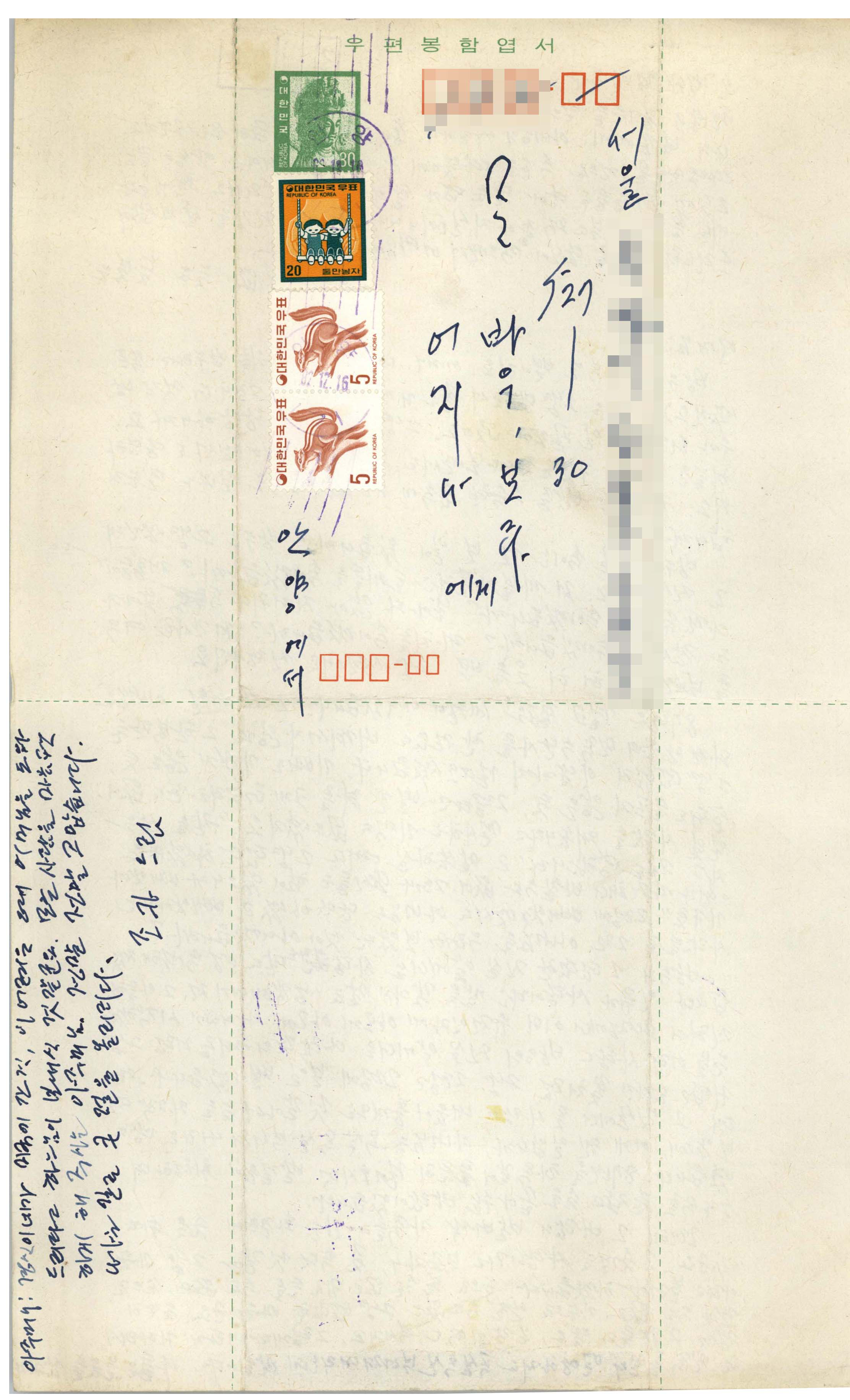 아버님의 싸늘하던 손이 생각나서 급히 쓰는 편지요. 따뜻한 물수건으로 두 손을 따뜻하게 녹여 드리고, 대야나 양동이 같은 그릇에 뜨거운 물을 담아 팔다리를 녹여 드리시오. 혈액 순환에도 좋구요, 기분도 퍽 좋아지실 테니까. 어머님의 건강을 잘 보살펴 드리도록. 효소를 당신이 먹으면서 어머님께도 권하시오.